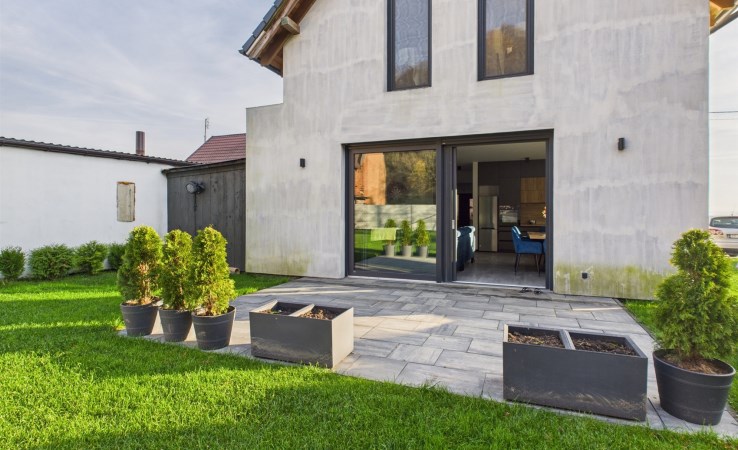 Duży taras z widokiem na zieleń – doskonały na poranną kawę lub letnie grillowanie,
