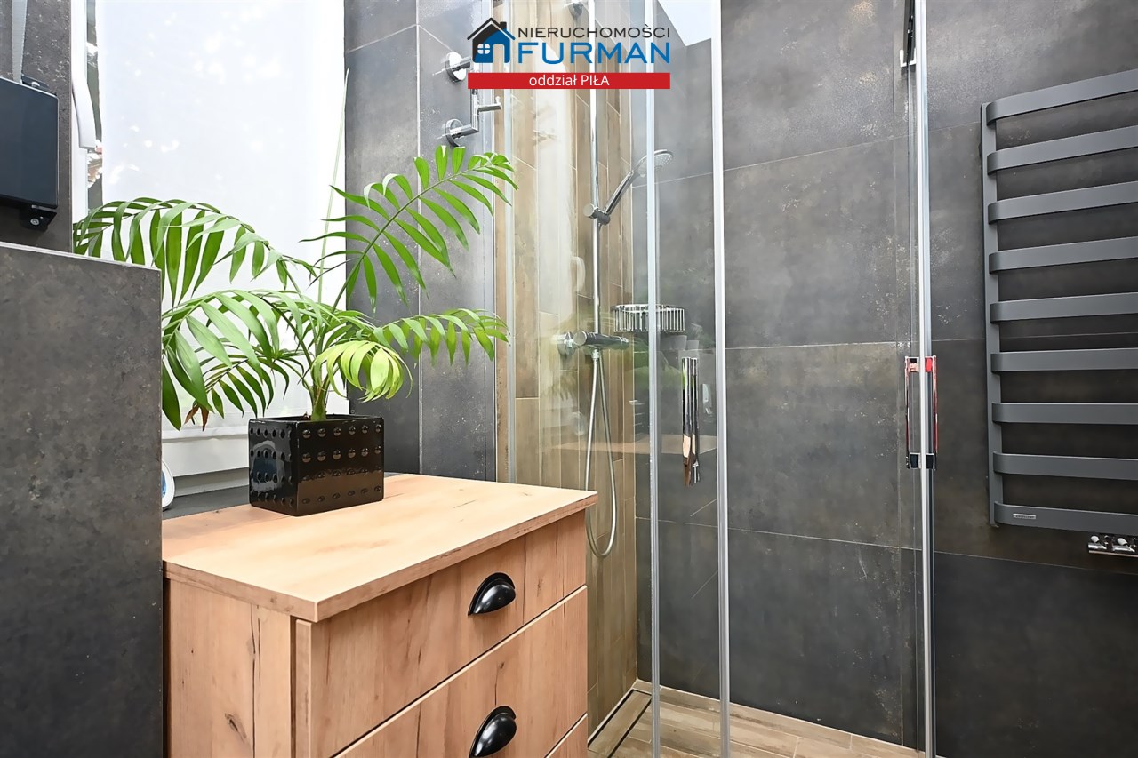 - Łazienka (ok. 4m²) z natryskiem i wc. W łazience dwa okna