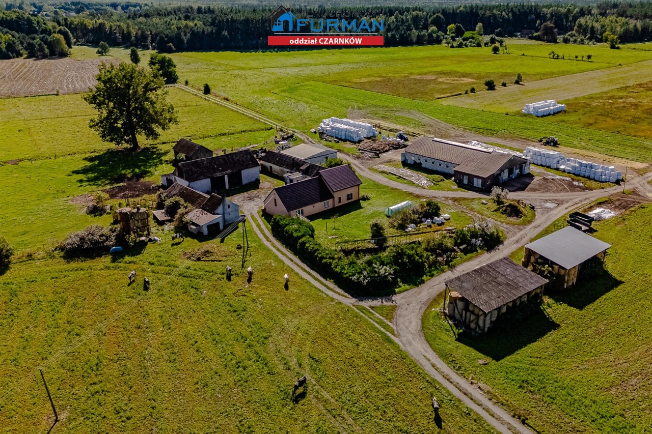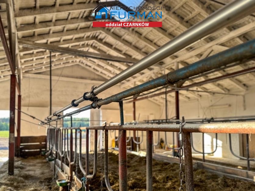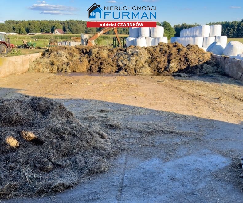 To kompletna nieruchomość – dom mieszkalny, nowa obora, magazyny, garaże, wiaty oraz baza paszowa.