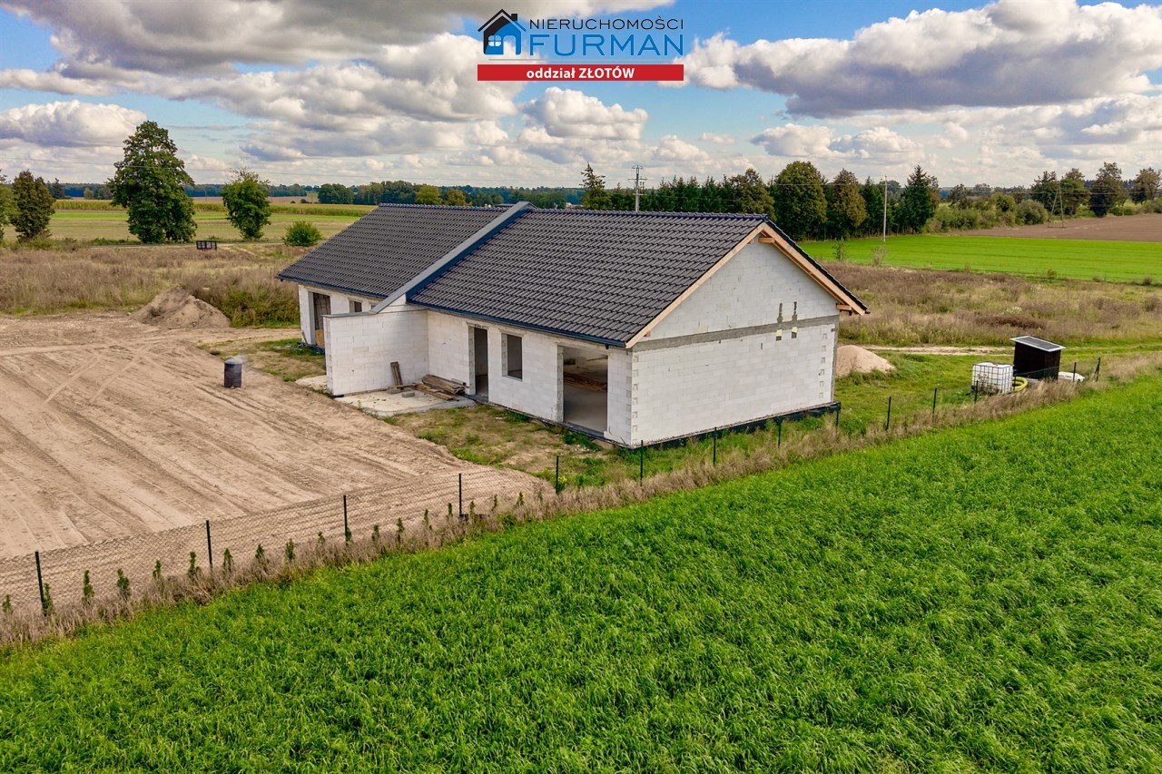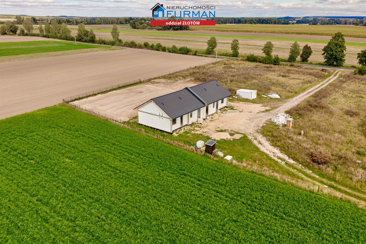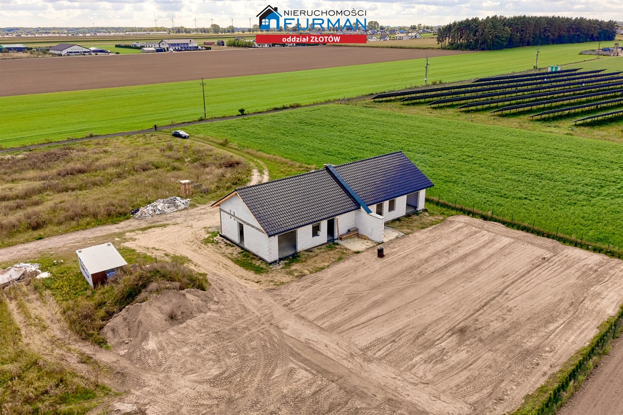 Dom w zabudowie bliźniaczej z poddaszem nieużytkowym, 3 sypialnie, salon z aneksem kuchennym, łazienka z WC oraz oddzielne WC pomieszczenie gospodarcze.