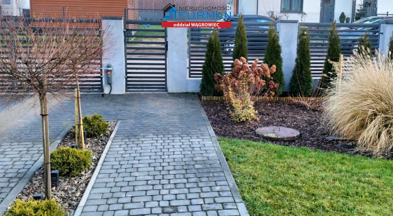 Przedmiotem oferty jest nowy dom mieszkalny w zabudowie bliźniaczej na spokojnym osiedlu w Skokach (forma prawna to odrębna własność lokalu z udziałem w gruncie)