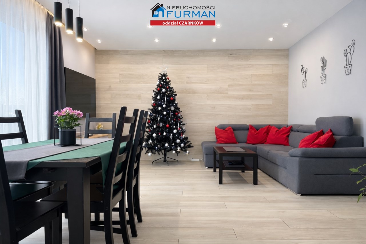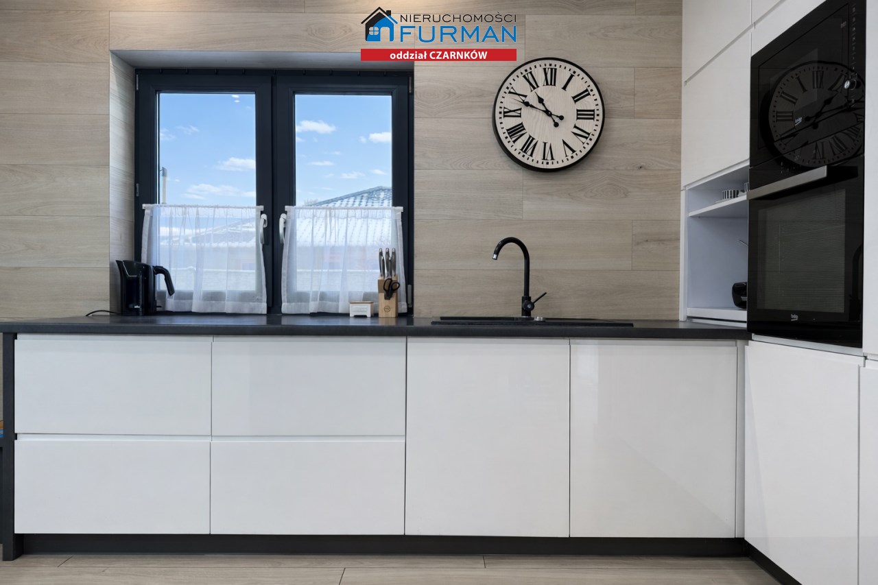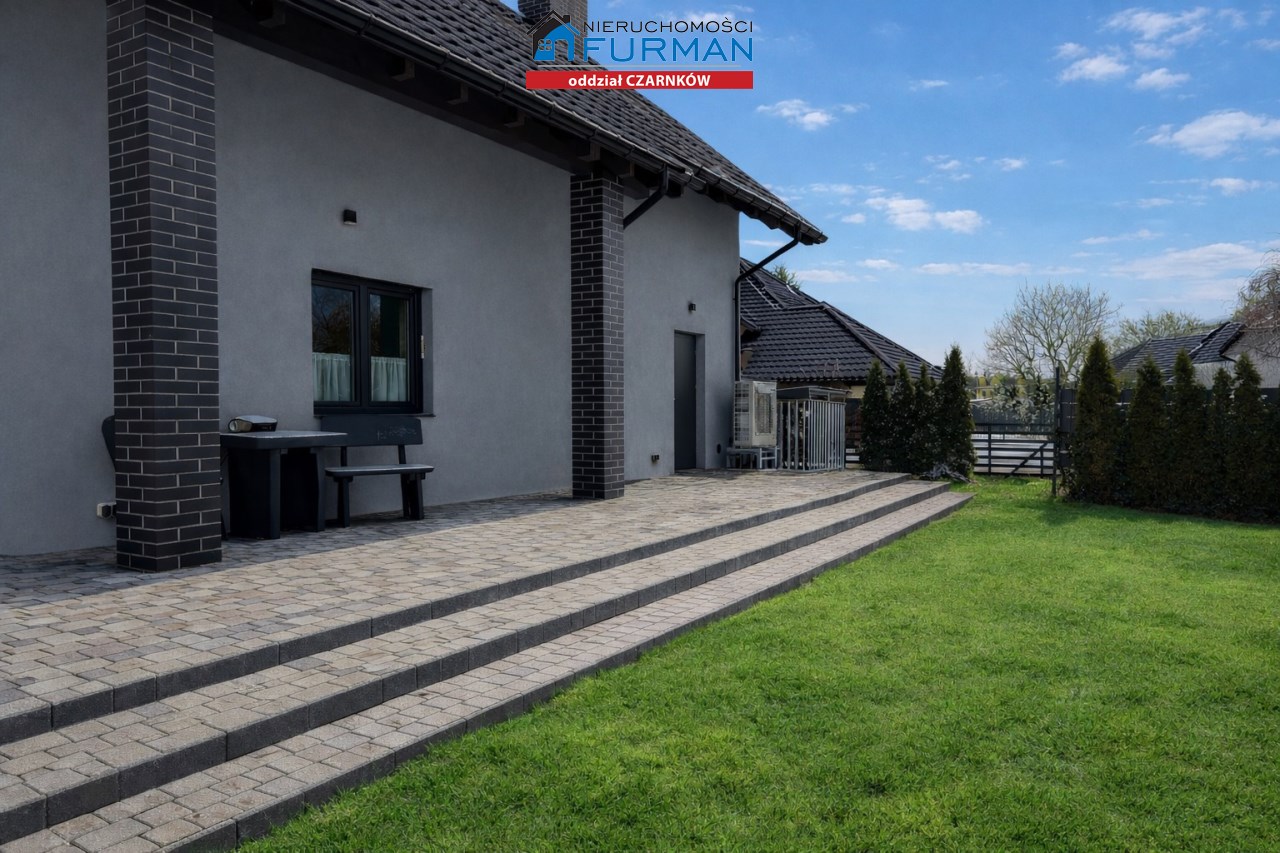Sam dom, wybudowany w 2019 roku, ma 130 m² powierzchni użytkowej i został zaprojektowany w sposób, który sprawnie oddziela strefę dzienną/ gościnną od prywatnej. Salon z wyjściem na taras , który naturalnie łączy wnętrze z ogrodem.