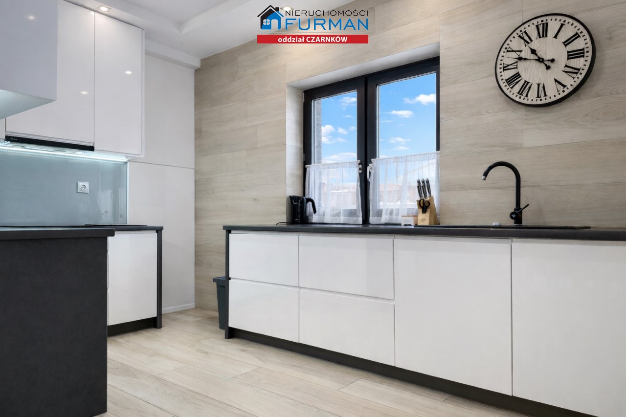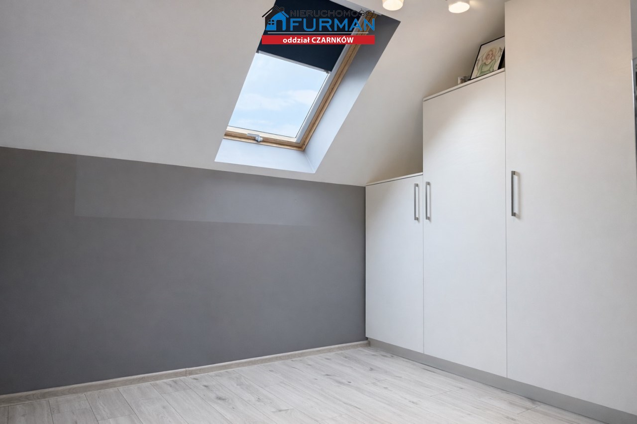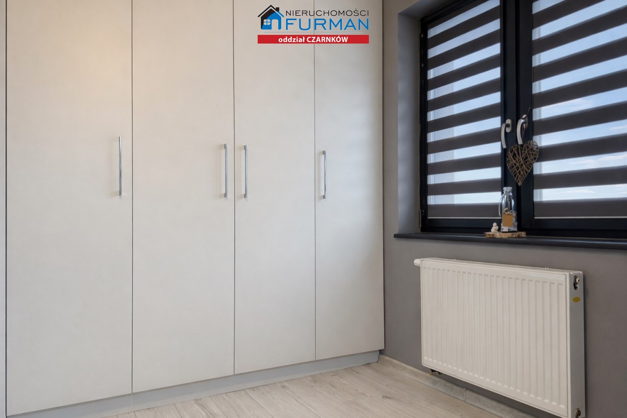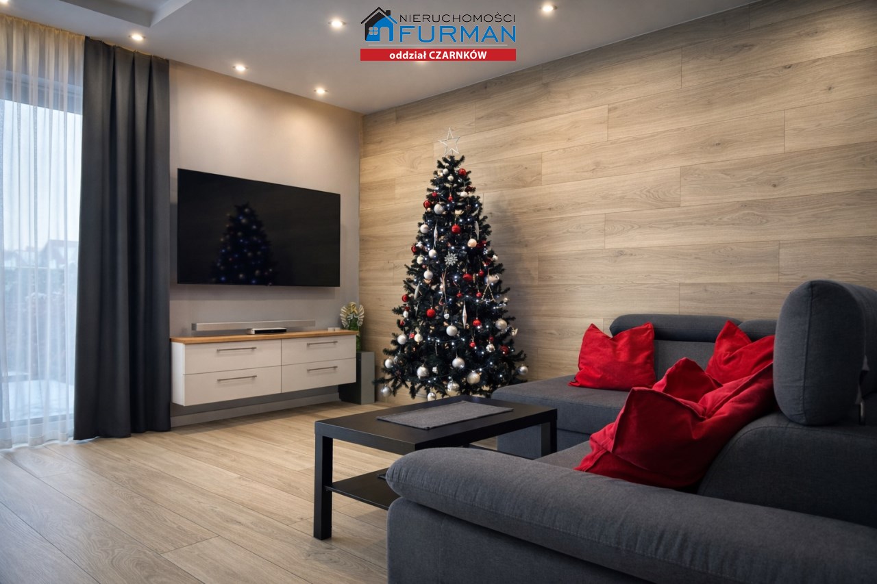 Sam dom, wybudowany w 2019 roku, ma 130 m² powierzchni użytkowej i został zaprojektowany w sposób, który sprawnie oddziela strefę dzienną/ gościnną od prywatnej. Salon z wyjściem na taras , który naturalnie łączy wnętrze z ogrodem.