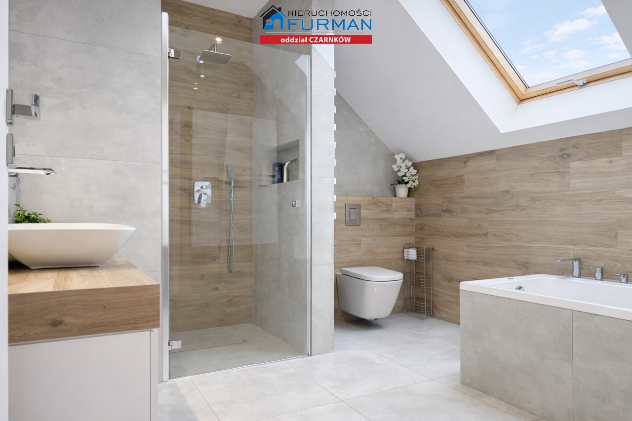 Druga łazienka z prysznicem, dużą wanną i oknem , co podnosi komfort użytkowania.