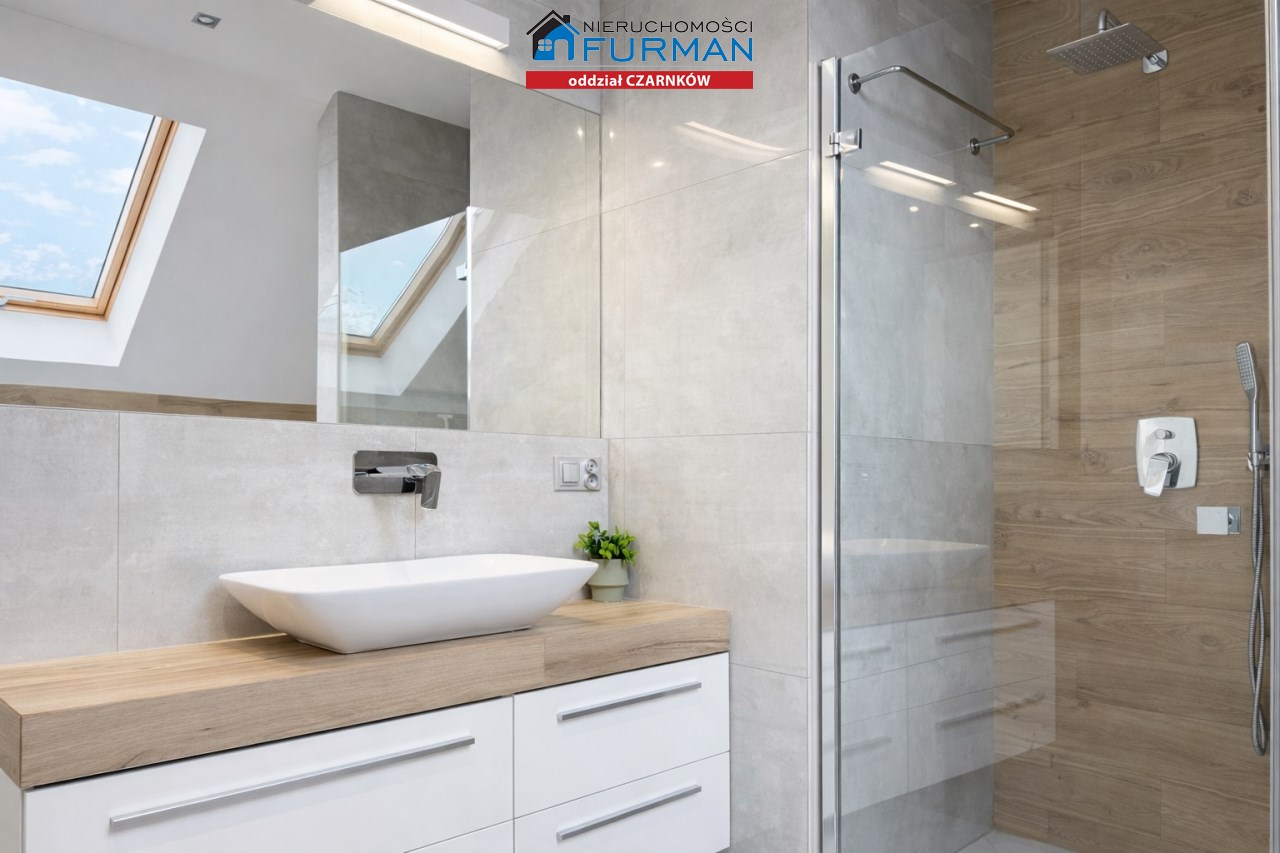 Na parterze znajduje się także jedna sypialnia , idealna jako pokój gościnny, gabinet lub sypialnia dla domownika, a także łazienka z prysznicem ,