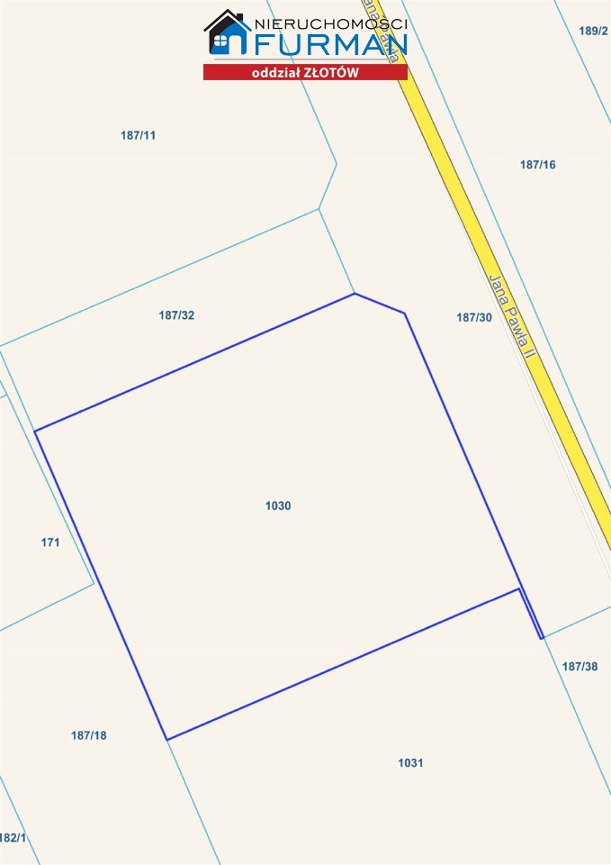 - kąt pomiędzy frontem działki, a liniami podziału na działki w przedziale od 60° do 120o;
