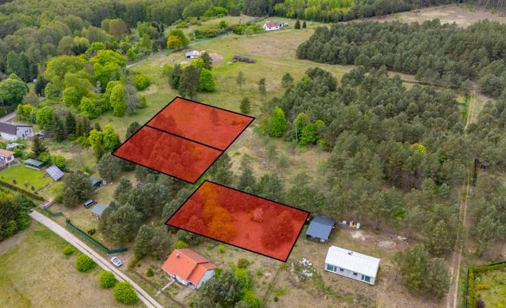 Działki położone w miejscowości otoczonej lasem w pobliżu rzeki Płytnica, na której urządzane są spływy kajakowe.