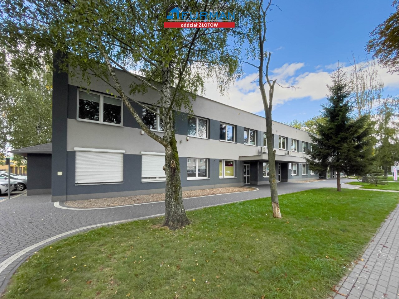 Parking za szlabanem dla właścicieli lokalu oraz ogólnodostępny parking z trzech stron budynku.