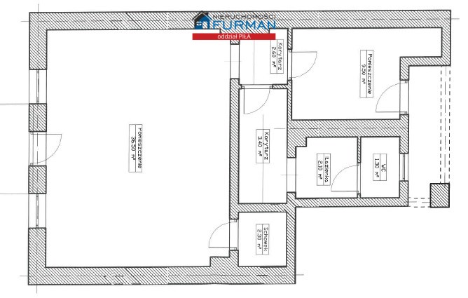 - Sala Główna (37,33 m2): Przestronna przestrzeń idealna na działalność handlową, biurową czy usługową.