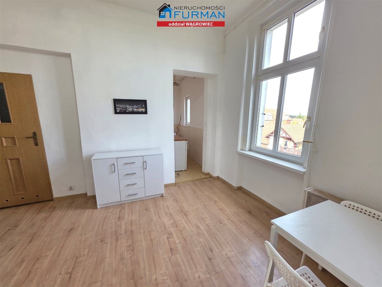 Układ pomieszczeń: salon, sypialnia, kuchnia, łazienka z toaletą