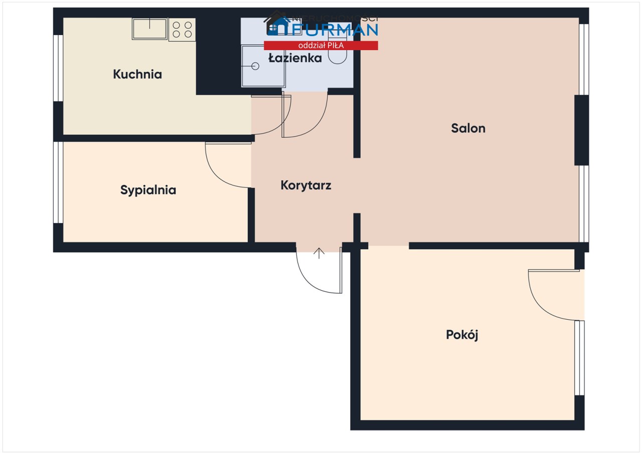 Mieszkanie znajduje się na 4. piętrze niskiego bloku. Jasne, ciepłe i bardzo ustawne – idealne do własnej aranżacji.