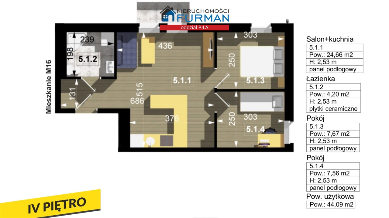 | Powierzchnia użytkowa [m2] | 44,09 m² |