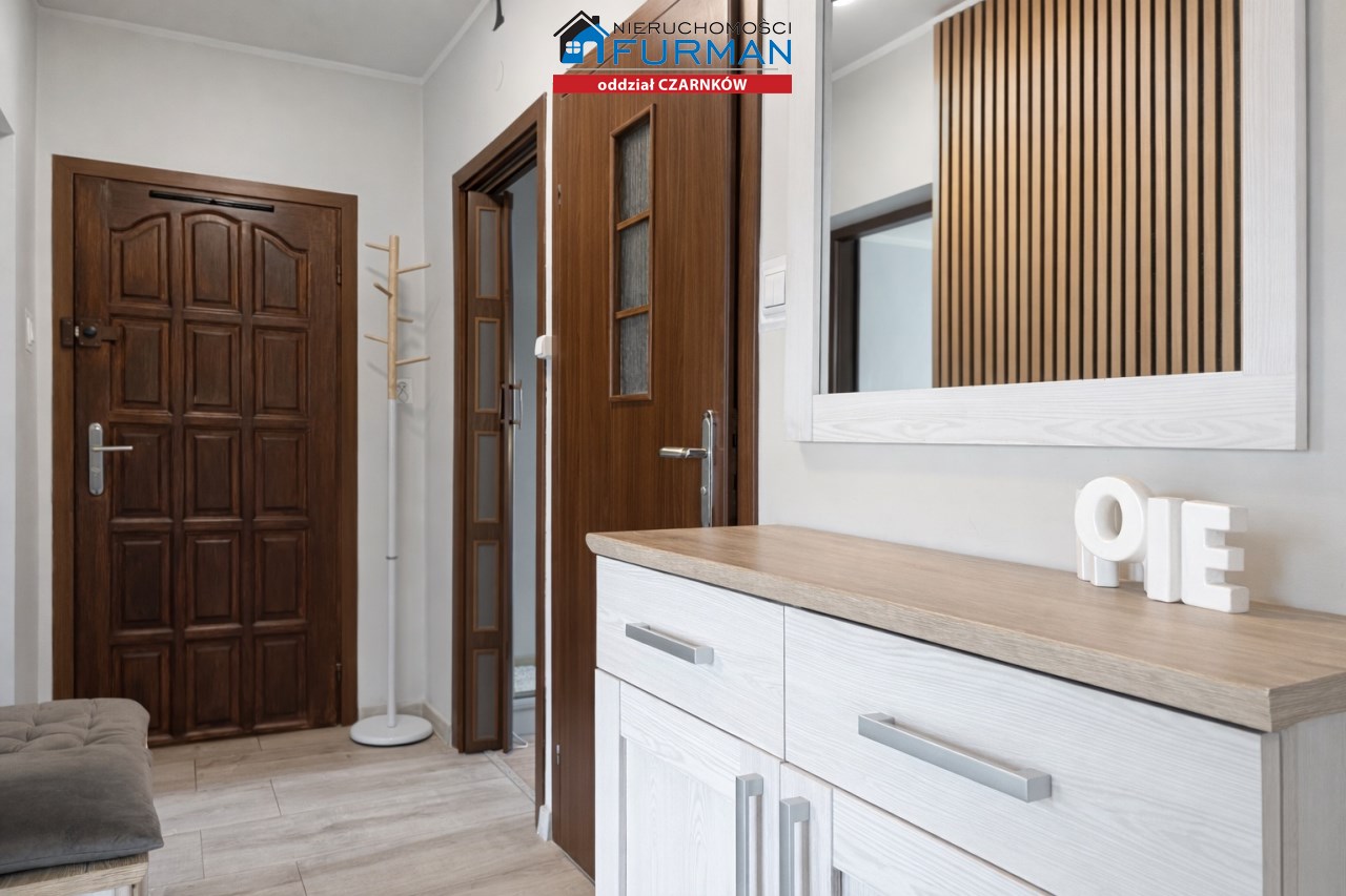 Już od wejścia uwagę zwraca przemyślany układ pomieszczeń, który daje więcej możliwości, niż standardowe 2 pokoje.