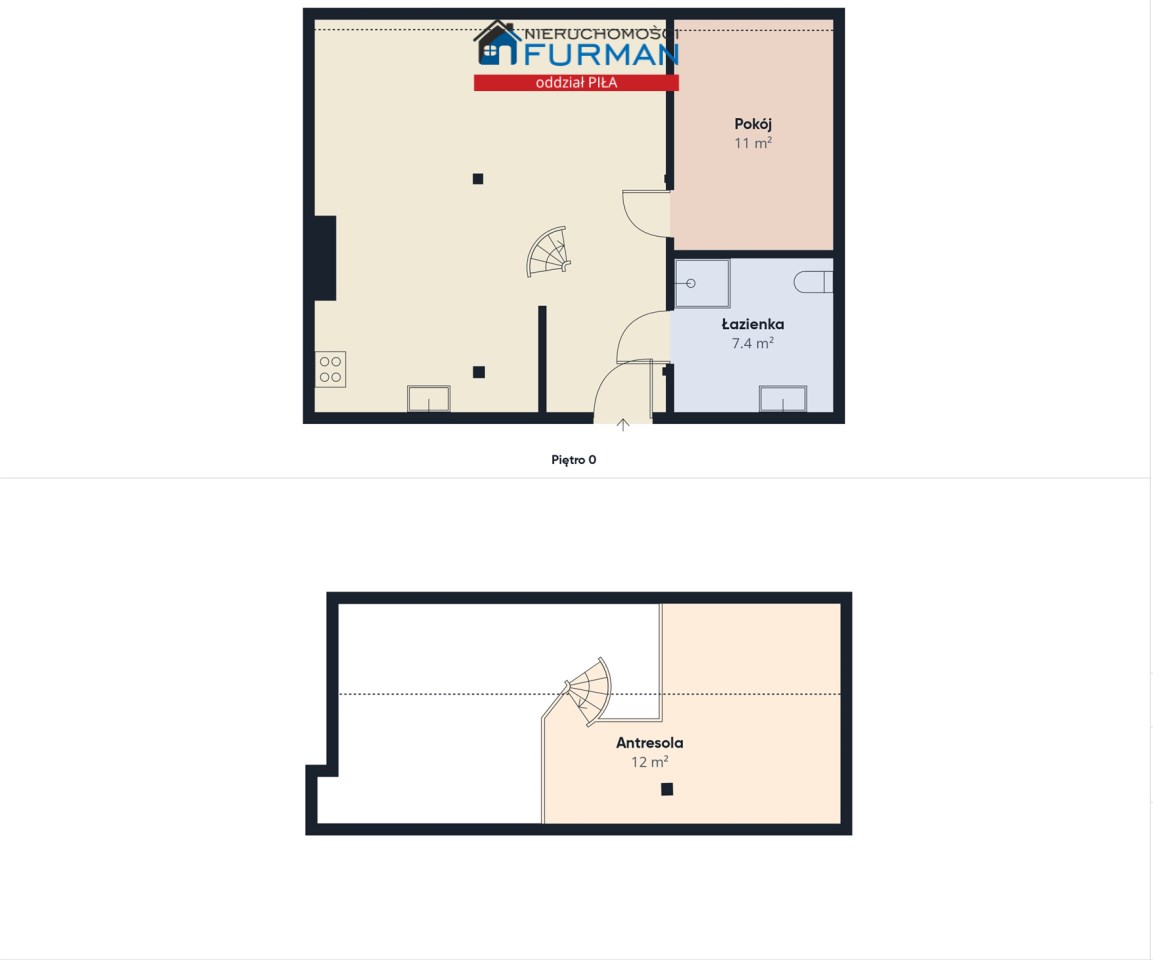 Antresola (pow. przypodłogowa ok. 12 m²) – idealna na dodatkową przestrzeń do pracy, sypialnię lub strefę relaksu