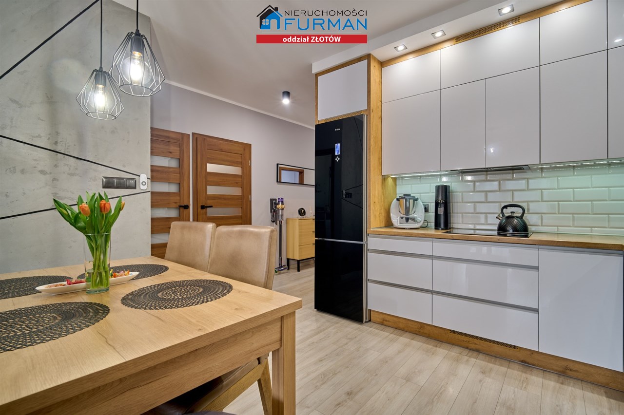 Duży salon połączony z kuchnią oraz pozostawione meble i zabudowy - nie musisz zaczynać od zera.
