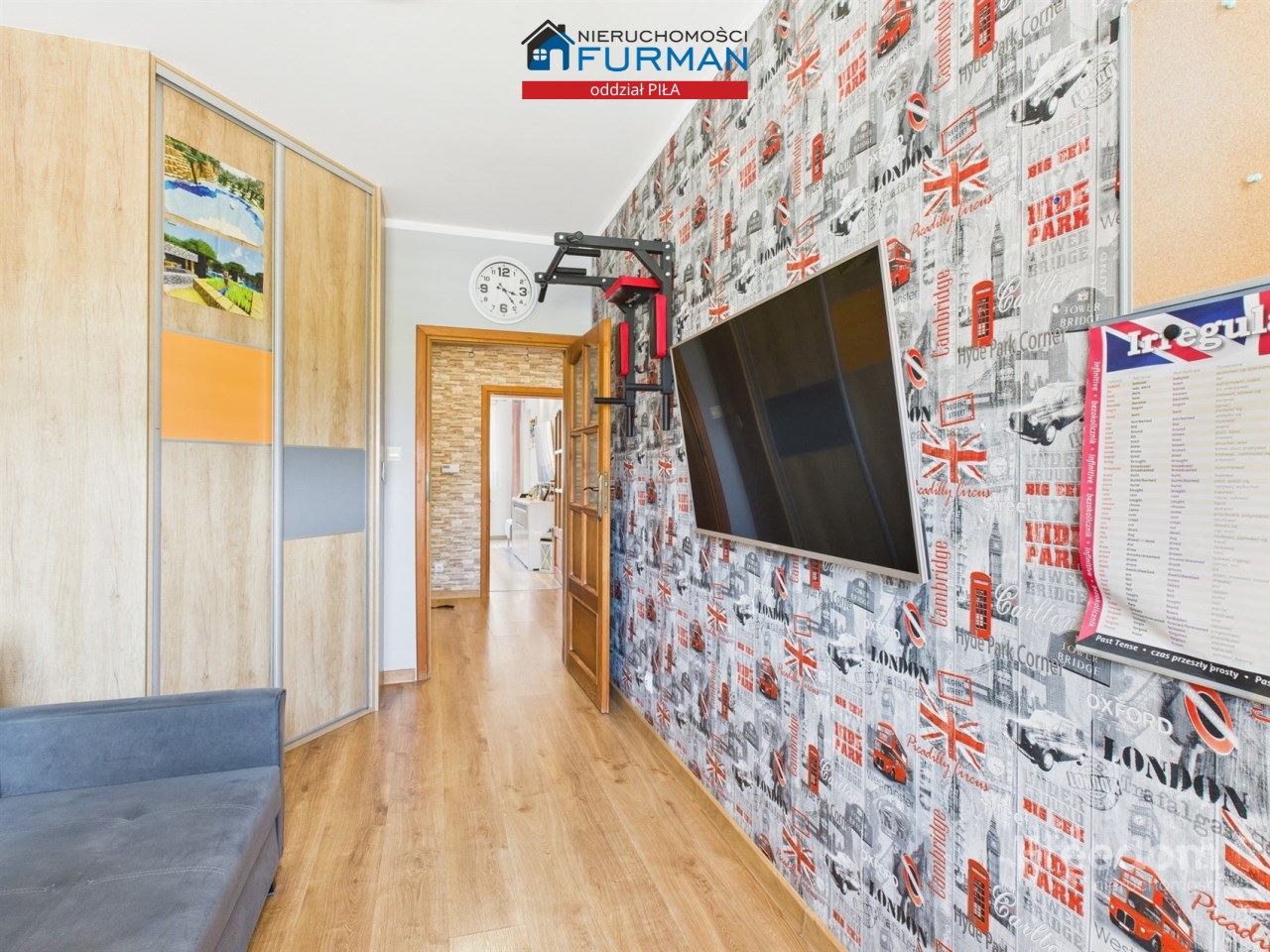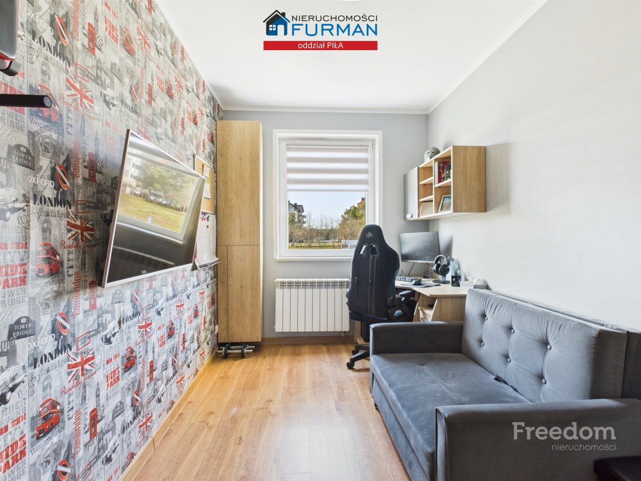pokój (10,30 m²) idealny na pokój dziecięcy, gabinet lub dodatkową sypialnię – również z zabudowaną szafą,