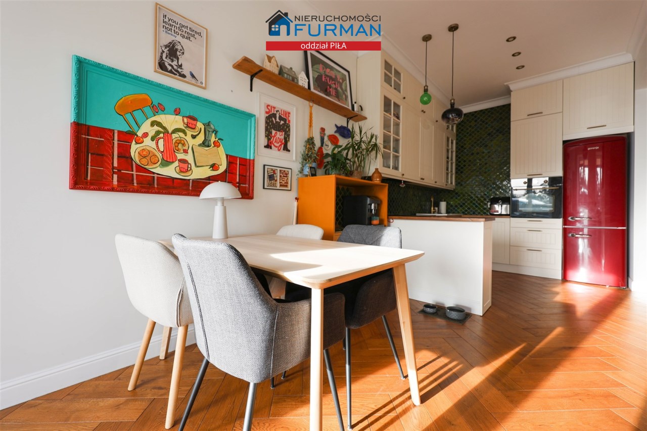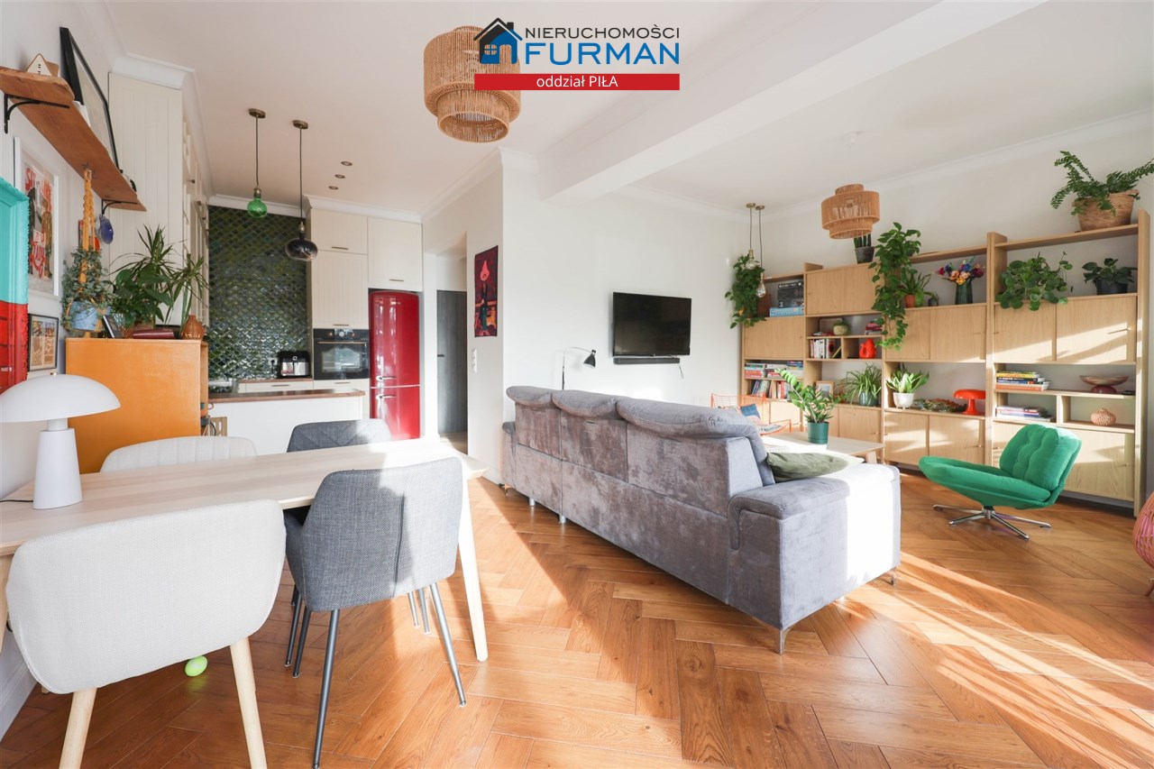- Salon: Przestronny i pełen światła, połączony z jadalnią oraz kuchnią. Idealna przestrzeń na spotkania z bliskimi, odpoczynek po pracy oraz codzienne życie. - Kuchnia: W pełni wyposażona, harmonijnie komponująca się z częścią dzienną. Funkcjonalna zabudowa pozwoli na wygodne przygotowywanie posiłków.