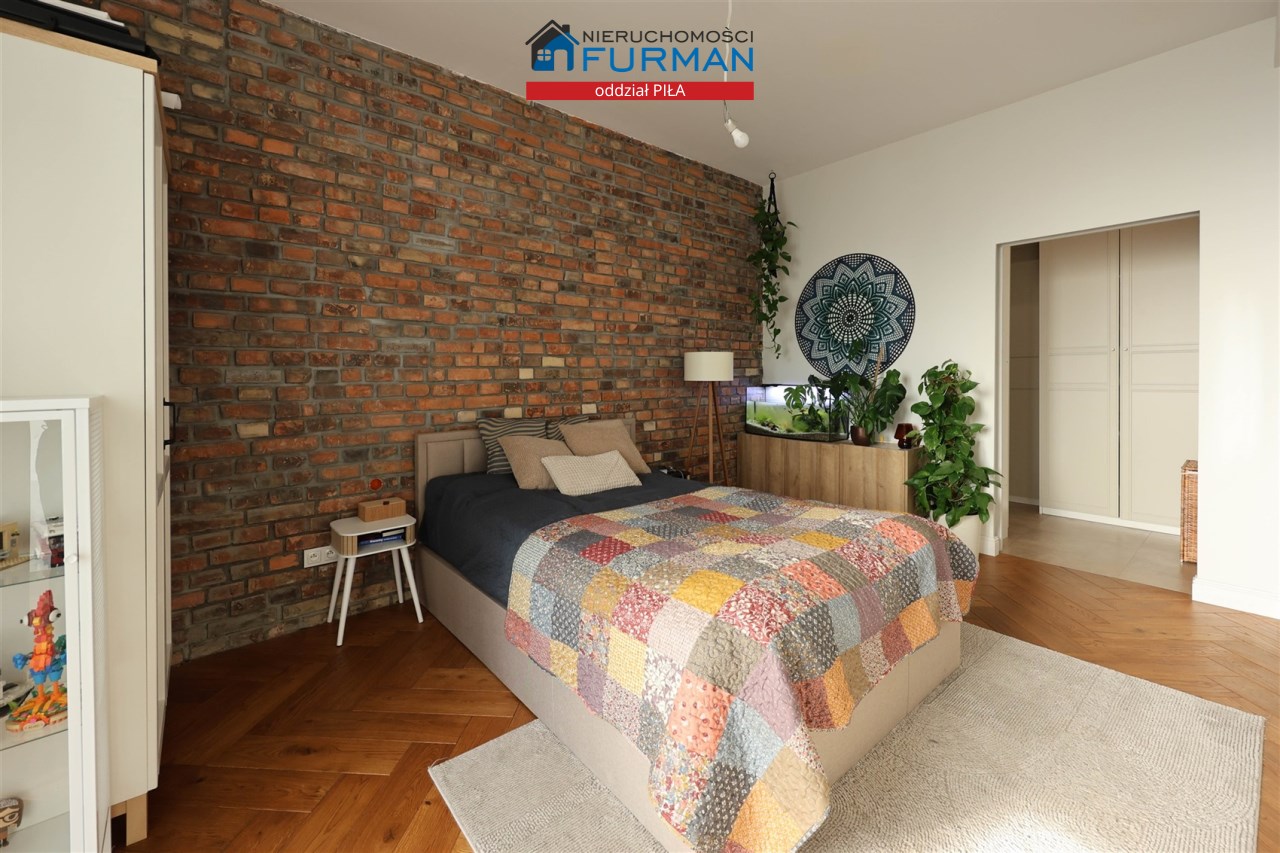 - Sypialnia: Komfortowa, z dużą garderobą zapewniającą praktyczną przestrzeń do przechowywania.