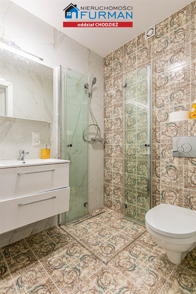 | Wyposażenie łazienki | kabina prysznicowa, lustro, pralka, umywalka, WC |