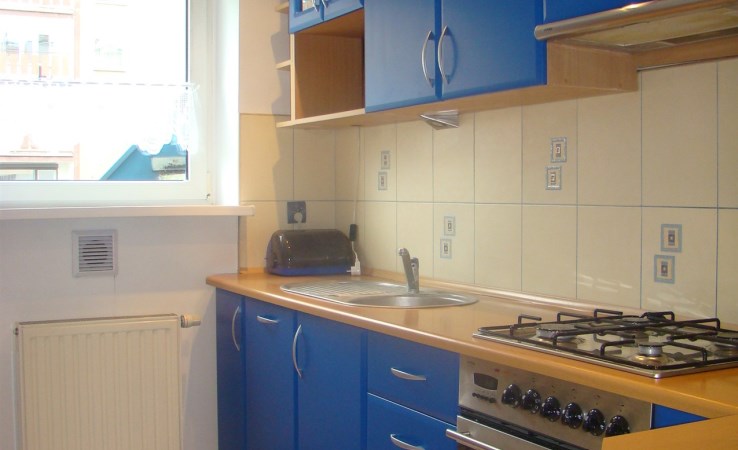 Wyposażenie kuchni | zabudowa kuchenna, lodówko-zamrażarka,, kuchenka elektryczna, krzesła, zlewozmywak z baterią |