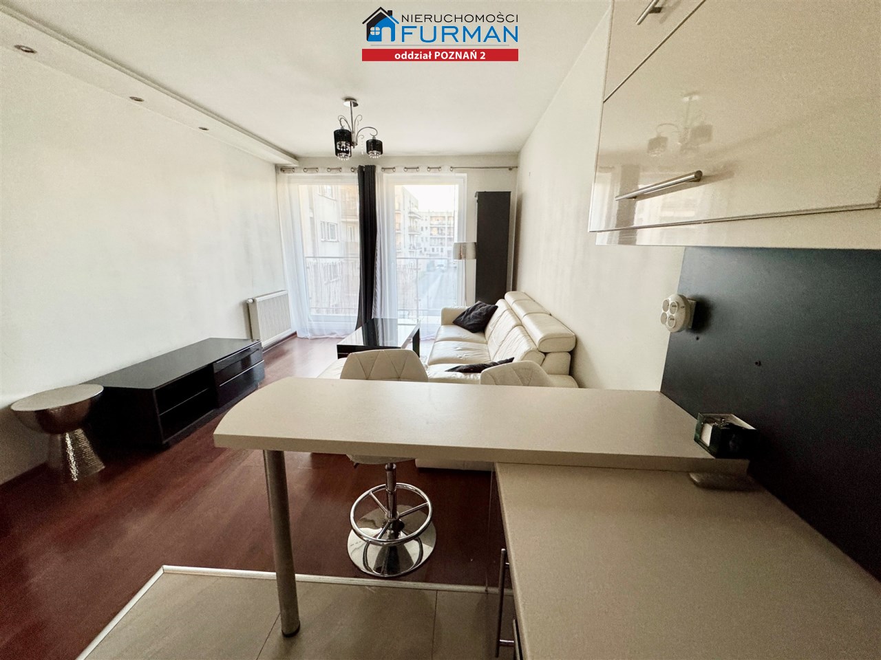 Mieszkanie w pełni umeblowane. Kuchnia w zabudowie wraz ze sprzętem AGD (lodówka, zmywarka 45', płyta grzewcza). W kuchni przy blacie dwa hokery, idealne miejsce do zjedzenia posiłku.