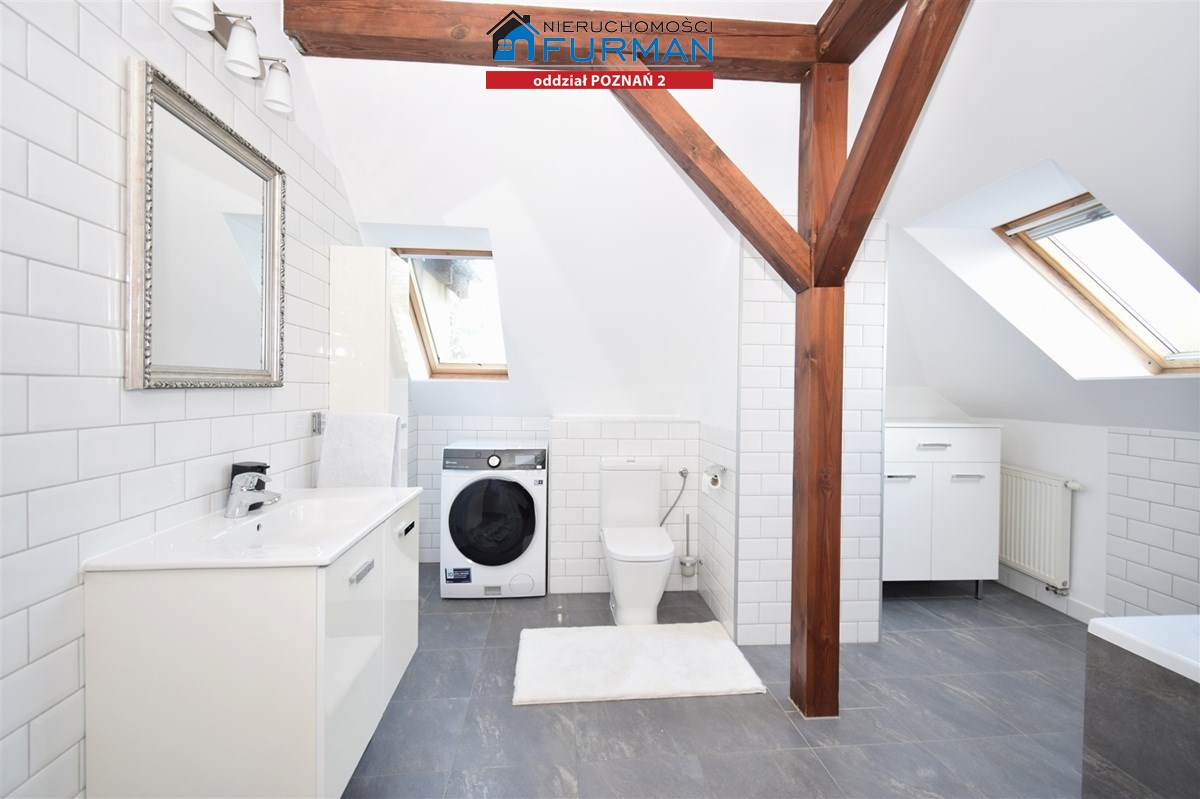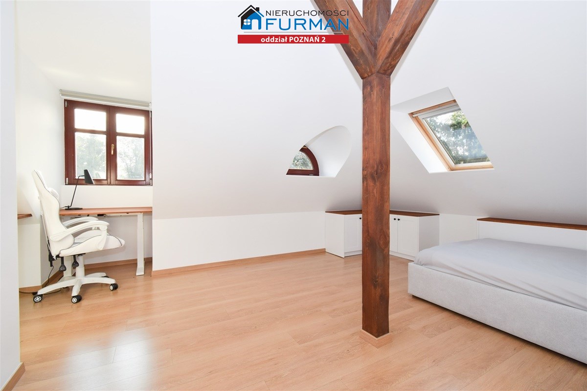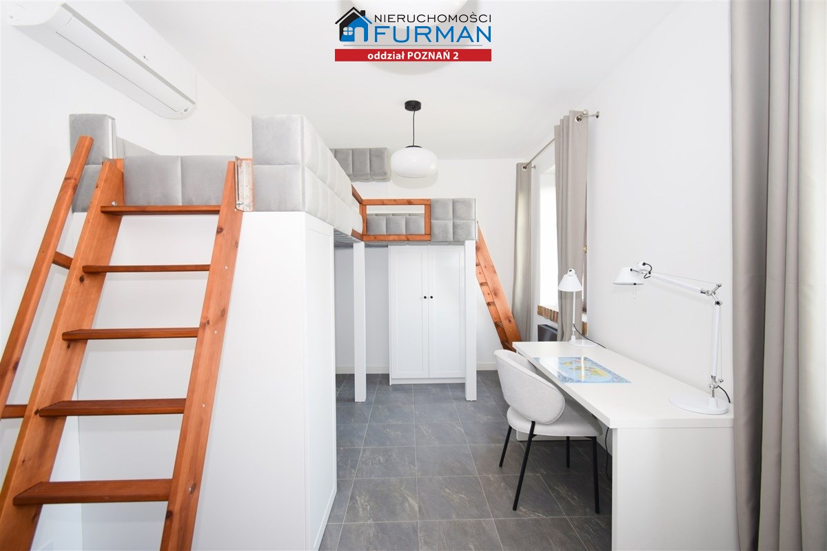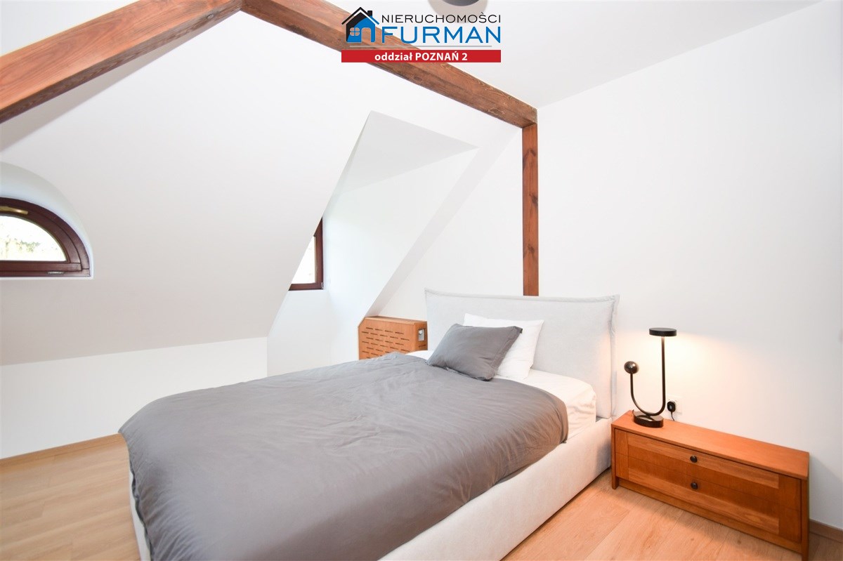 I invite you to rent the unique 4-room, air-conditioned apartment in a beautiful villa bordering the Sołacki Park in Poznan! The apartment is located in the exceptional villa with a beautiful view of the Sołacki Park. The apartment is finished to a high standard and is fully furnished. It has around 102 M2 of usable area. Its surface consists of: - a living room with a kitchenette (32 M2) - 3 bedrooms (14.17 M2; 15.87 M2 (29.83 M2 on the floor); 15.70 M2 (28.86 M2 on the floor)) - bathroom (14.61 M2) - corridor (9.94 M2) - wardrobe The plan of the apartment is attached. Apartment finishing: Built-in kitchen with household appliances (fridge-freezer, oven, dishwasher). In living room there is a big table, chairs, sofa and TV. The bathroom has a bath, shower, washing machine, sink and toilet. There is a built-in wardrobe in the corridor. In the first bedroom there is a large double bed, a built-in wardrobe with lighting, a bedside table and cabinets. The second bedroom has a bed, wardrobes and a height-adjustable work desk. The third bedroom has a bunk bed for two children, wardrobes, shelves and a desk. This room has also a hidden compartment in the wall that could be used as a walk-in closet. It measures approximately 11 squere feet of the floor space. The apartment comes with one covered parking space on the property. Other cars can be parked in front of the building - there is no paid parking zone. includes 1 parking space on the property.Long-term rental (minimum 12 months contract ) Location: Małopolska Street is a place located opposite one of the most beautiful parks in Poznań - Sołacki Park. An ideal place for active leisure - walking and cycling routes. In addition, in the immediate vicinity there is Lake Rusałka (about 1.5 km), and a bit further Lake Strzeszyńskie and Kierskie. Małopolska Street is perfectly connected. The nearest tram stop is only 120 m away. In the immediate vicinity there are restaurants, shops, and the University of Life Sciences. Due to the nature of the buildings, the proximity of the park and the location in the center of Poznań, the area is considered the most prestigious in the city. Rental price: PLN 8000 / month + ca. PLN 880 admin fee (includes advance payment for cold water and garbage fee for 1 person)+ utility costs (gas and electricity) Deposit: PLN 16,000