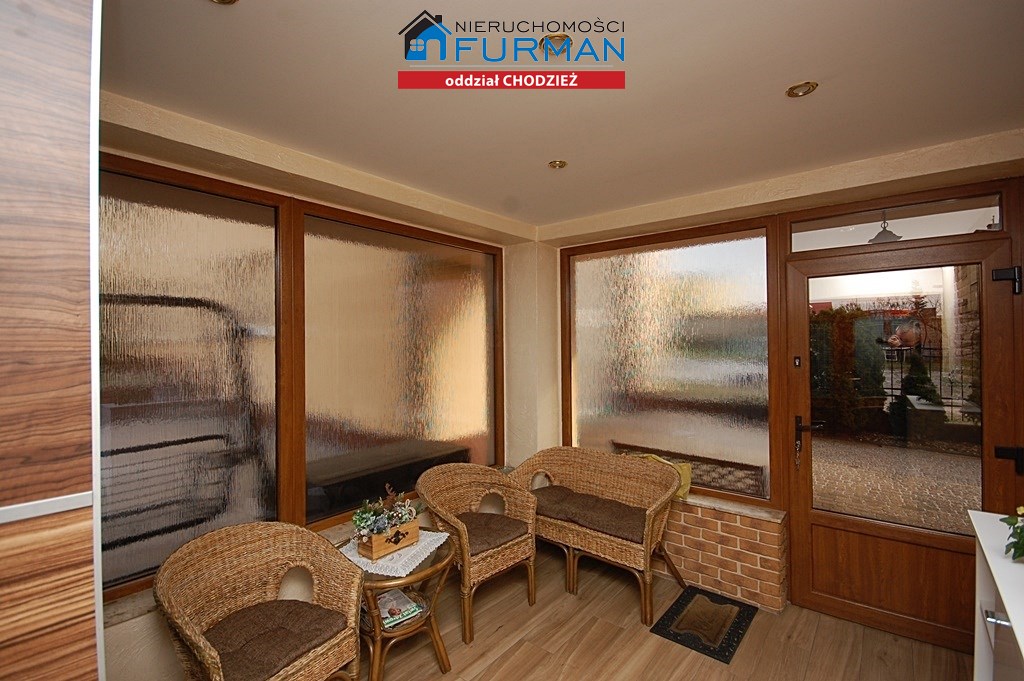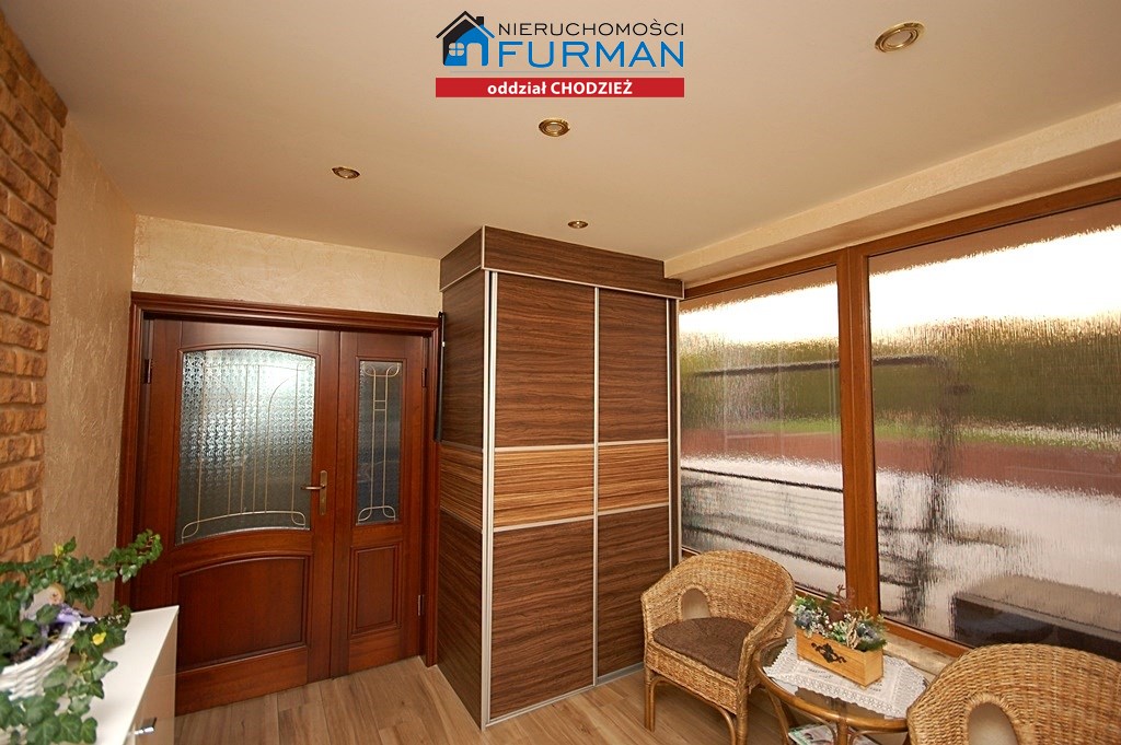 1.Wiatrołap-ok 11,50m2 oszklony,ściany w tynku ozdobnym,imitacjach piaskowca,podłoga terakota,oświetlenie halogenowe,w cenie szafa w zabudowie