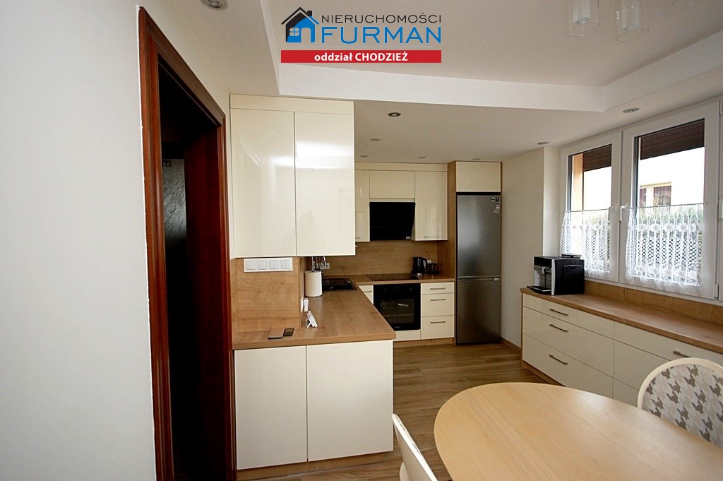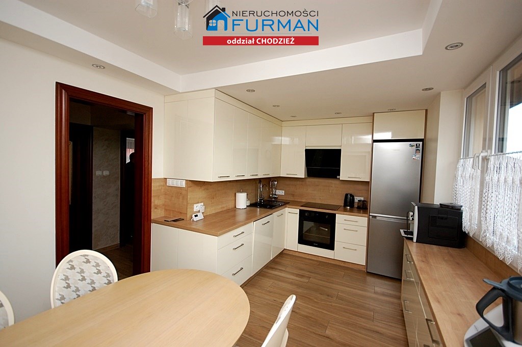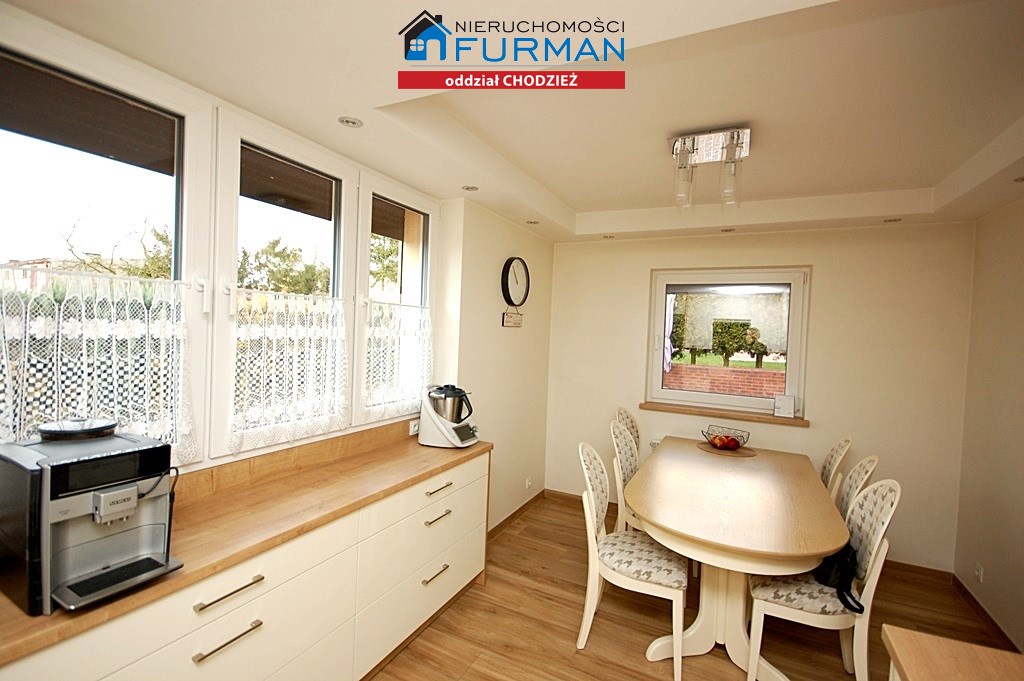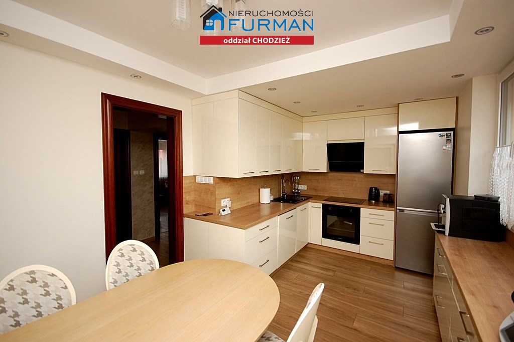 3.Kuchnia-ok 12,55m2 podłoga terakota/płytki panelopodobne/,ściany gipsowane+płyta meblowa,dwa duże okna pcv/bardzo dobre doświetlenie wnętrza/,w cenie pozostaje pełna zabudowa meblowa kuchni+stół i 6 krzeseł;wyposażenie AGD-płyta indukcyjna+piekarnik+okap Samsung,lodówka samsung,zmywarka Samsung