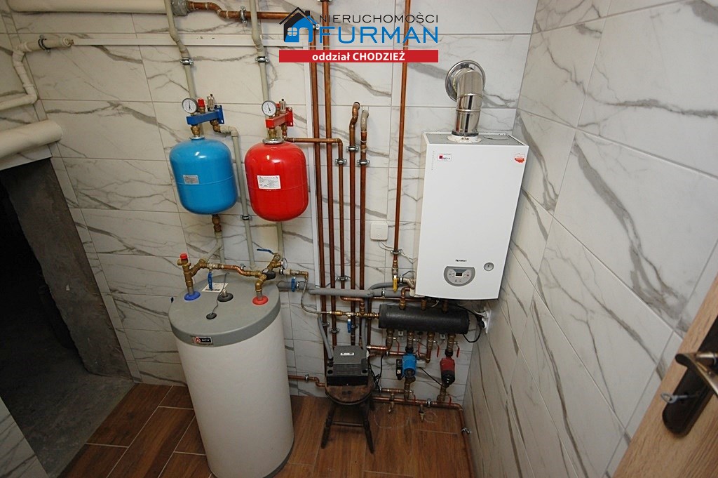 1.Pomieszczenie kotłowni-ok 4,50m2 Piec gazowy-dwufunkcyjny "Termet",zasobnik na wodę 160l,piec elektryczny na wodę "Ariston"-niezależny system podgrzewania wody