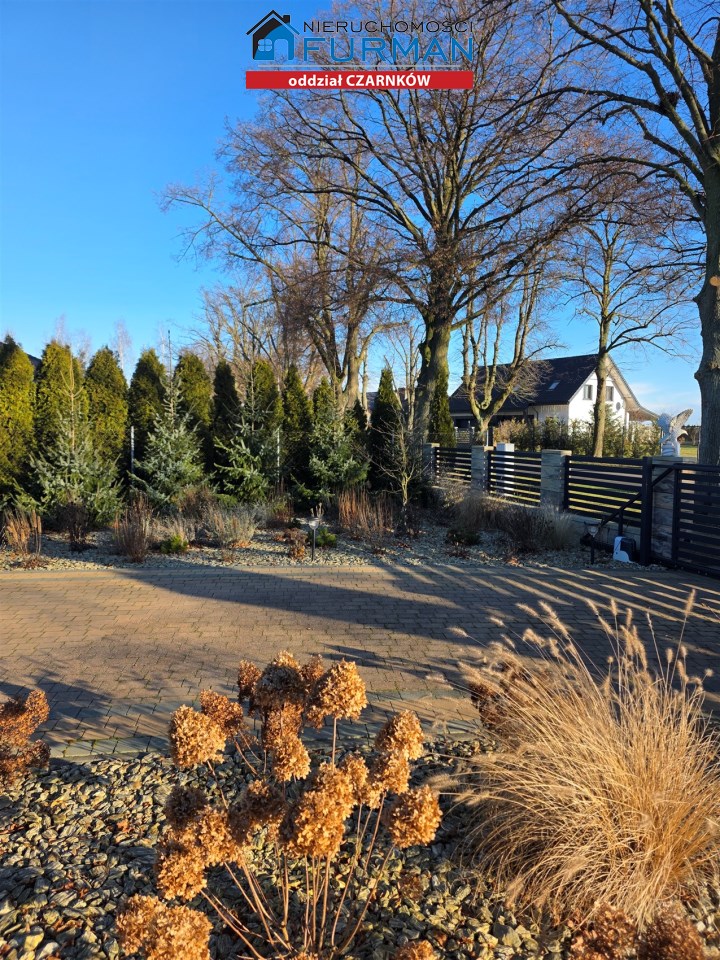Pięknie zagospodarowana działka o powierzchni 1 358 m² stanowi spójną, reprezentacyjną całość z budynkami.