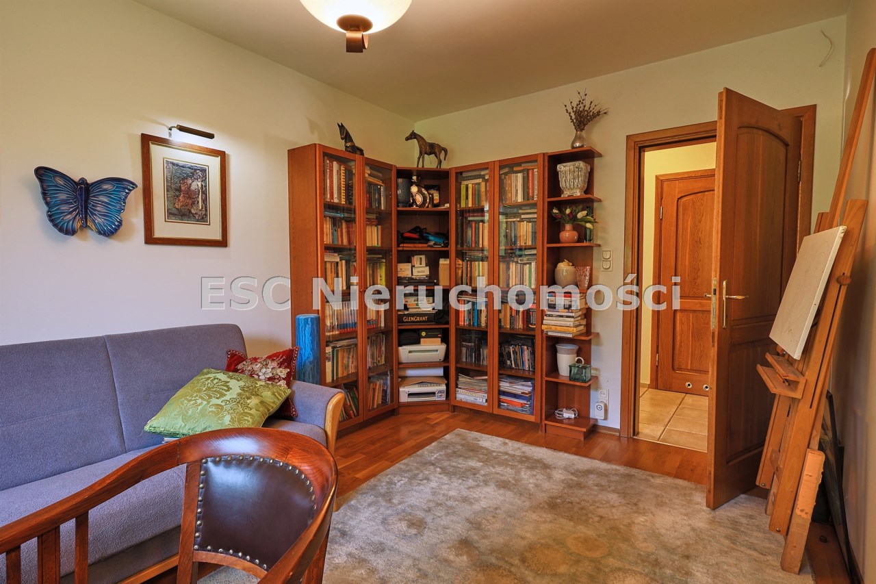 W salonie kominek (rozprowadzanie ciepła w salonie i na poddasze). W cenie domu umeblowanie na górnym piętrze. Duża ilość okien i wysokie sufity oddają wrażenie szczególnej przestronności.