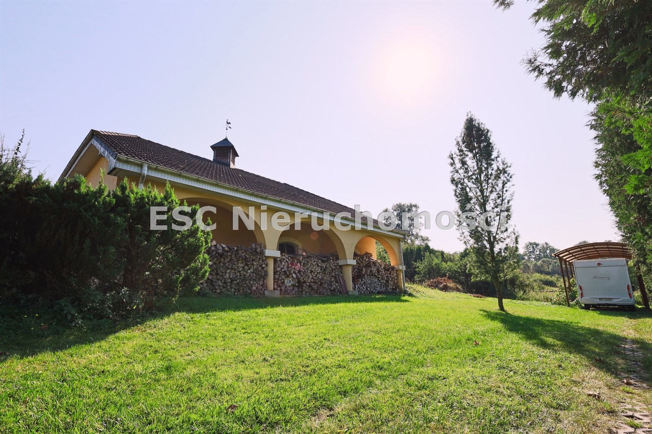 Ten komfortowy i przestronny dom został wybudowany z wysokiej jakości materiałów. Budynek o zwartej bryle. W podpiwniczeniu możliwość prowadzenia działalności gospodarczej! Dach symetryczny, czterospadowy kryty dachówką ceramiczną BRAAS. Ogrzewanie gazowe (corocznie serwisowany piec). Instalacja paneli fotowoltaicznych na osobnym budynku zasila w energię elektryczną dom.