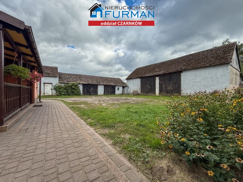 To kompletna nieruchomość – dom mieszkalny, nowa obora, magazyny, garaże, wiaty oraz baza paszowa.