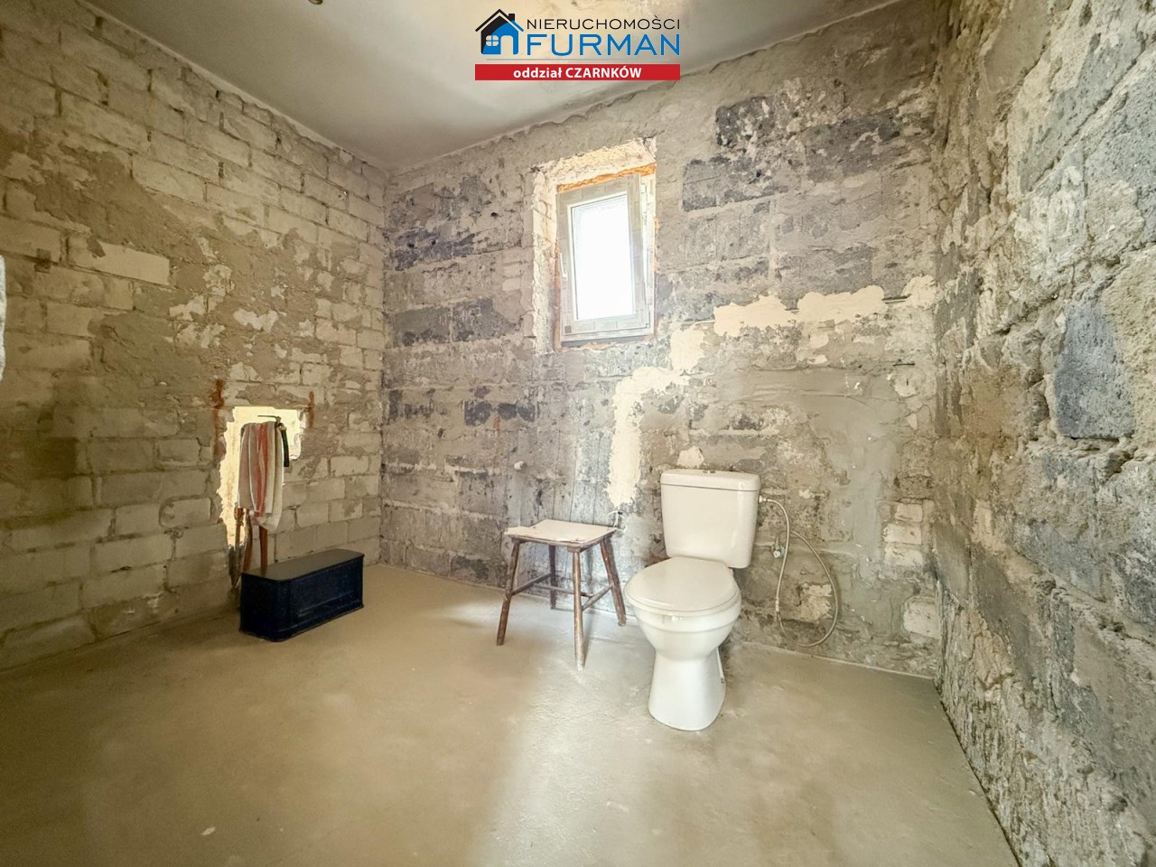 Budynek przygotowany do remontu – brak pieca, instalacja elektryczna stara, ale prąd jest, woda z wodociągu, kanalizacja miejska.