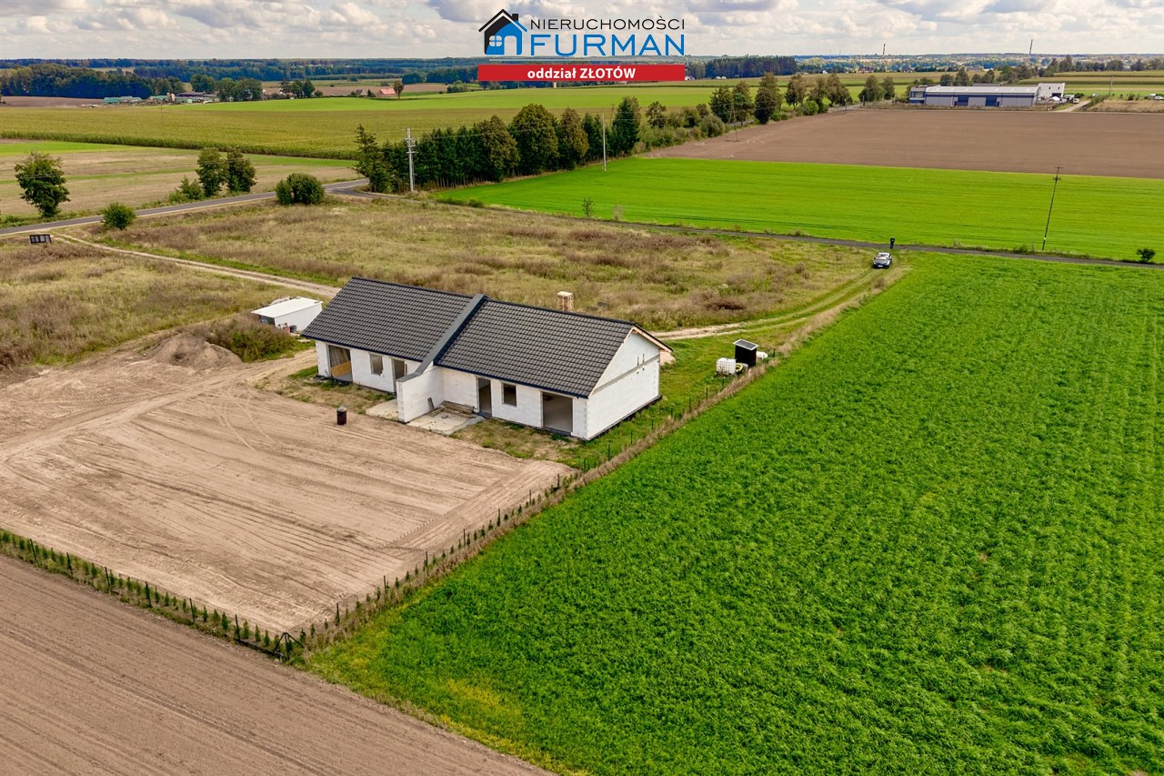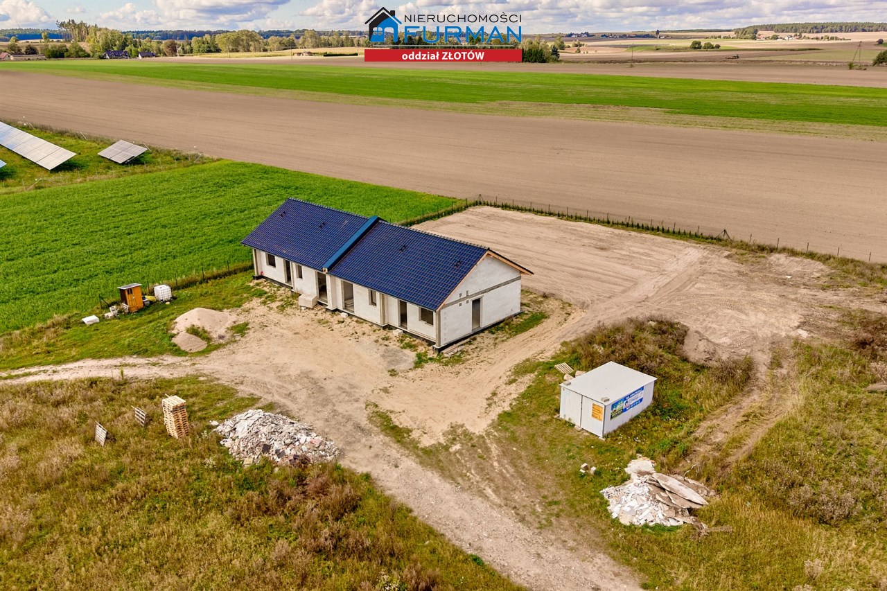 Dom w zabudowie bliźniaczej z poddaszem nieużytkowym, 3 sypialnie, salon z aneksem kuchennym, łazienka z WC oraz oddzielne WC pomieszczenie gospodarcze.