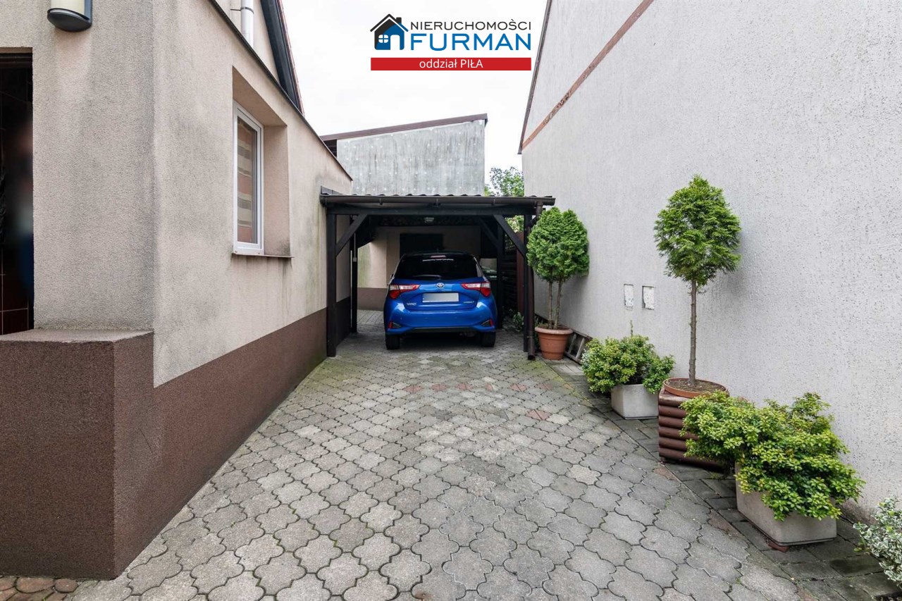 Dodatkowo na terenie posesji znajduje się budynek gospodarczy oraz wiata. Podjazd wykończony polbrukiem. Przed budynkiem znajdują się 2 miejsca postojowe dla mieszkańców.