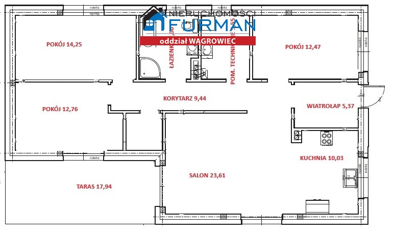 3 pokoje o pow. 12,47m2, 14,25m2, 12,76m2