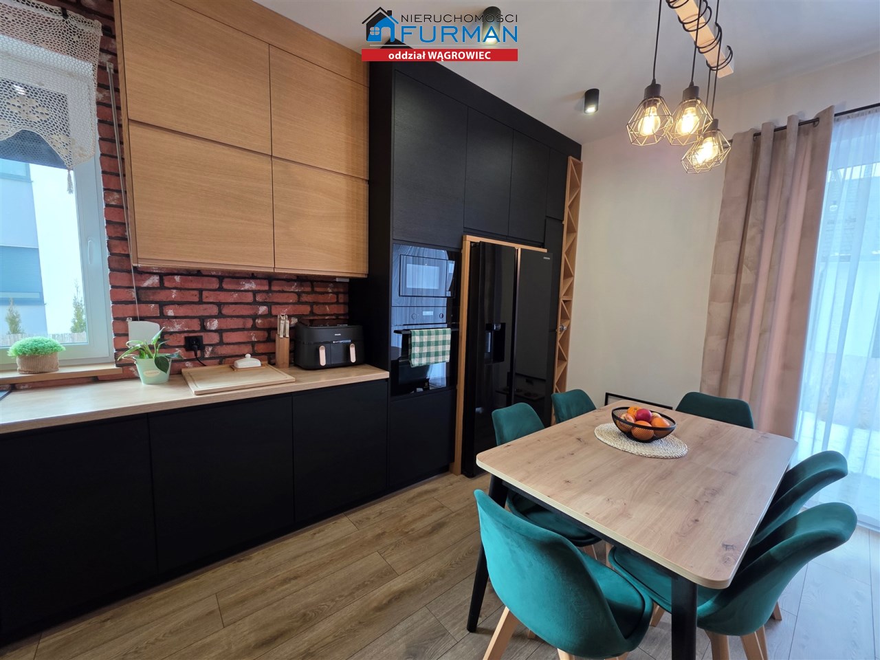Aneks kuchenny o pow. 4,44m2 - meble kuchenne wykonane na wymiar, lodówko - zamrażarka side-by-side z dozownikiem wody i kostkarką wraz z filtrem, zmywarka w zabudowie 45cm, płyta indukcyjna, pochłaniacz zapachów, piekarnik w zabudowie, mikrofalówka w zabudowie, wygodne cargo do przechowywania