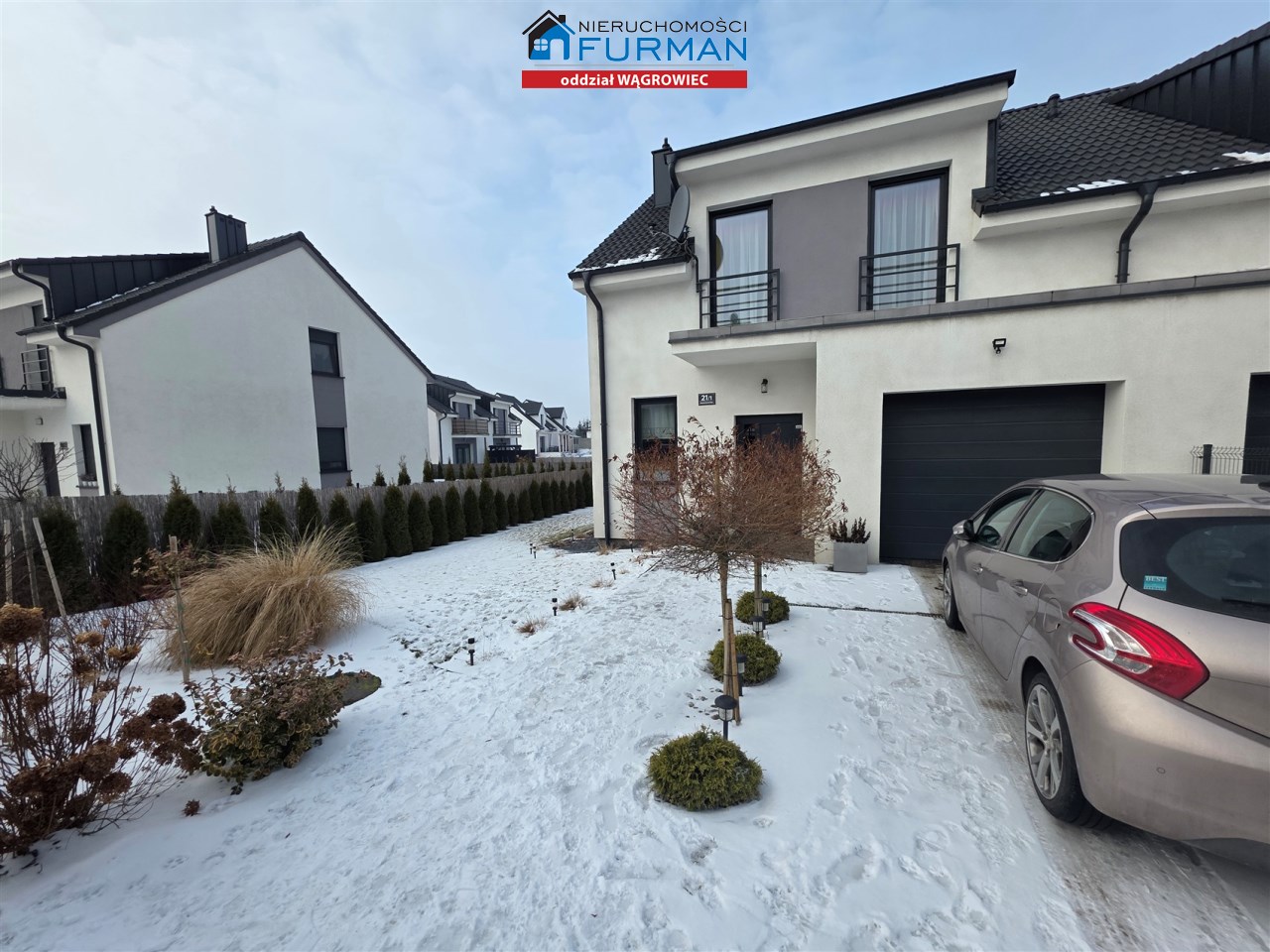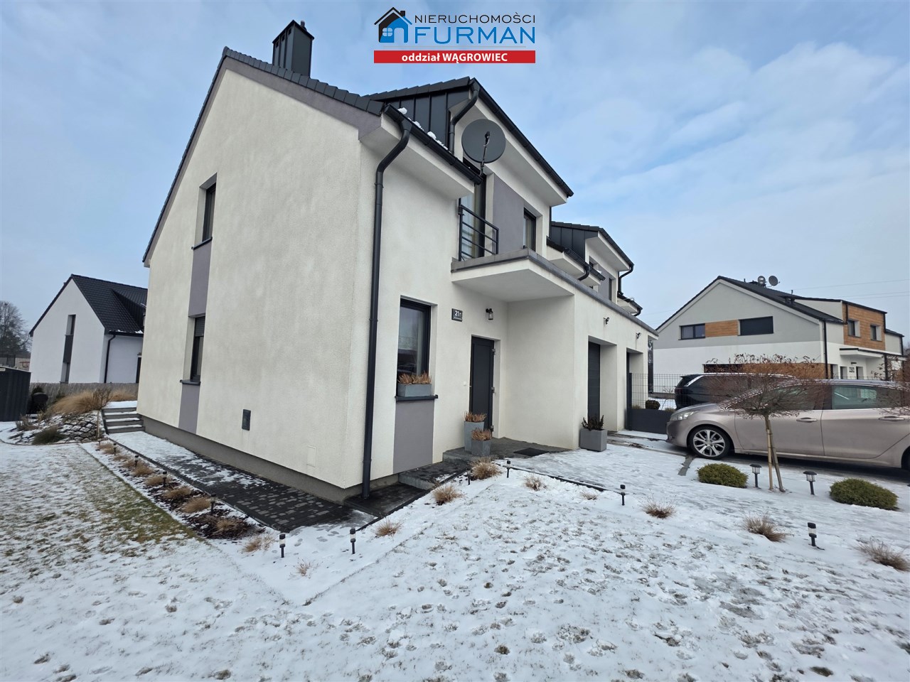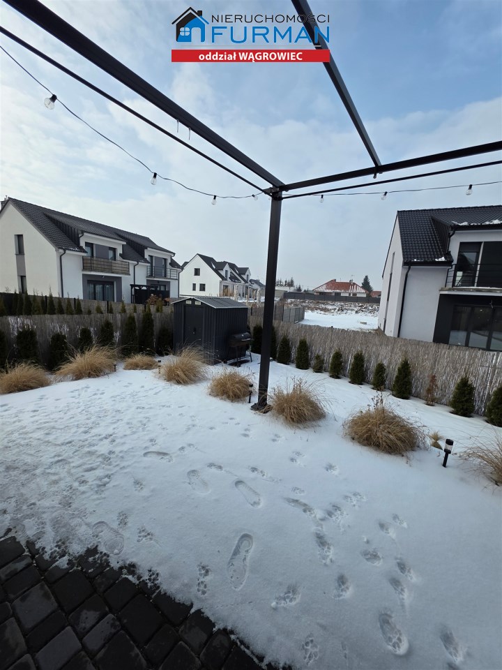 Przedmiotem oferty jest nowy dom mieszkalny w zabudowie bliźniaczej na spokojnym osiedlu w Skokach (forma prawna to odrębna własność lokalu z udziałem w gruncie)
