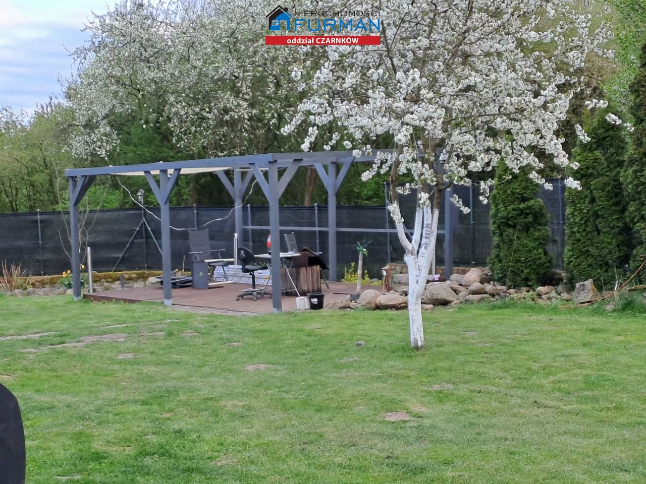 Dom posadowiony jest na ogrodzonej działce o powierzchni 1165 m², starannie zagospodarowanej licznymi nasadzeniami. W ogrodzie znajduje się basen, wędzarnia oraz miejsce do wypoczynku, a przy budynku zadaszony taras, idealny na rodzinne spotkania i relaks.