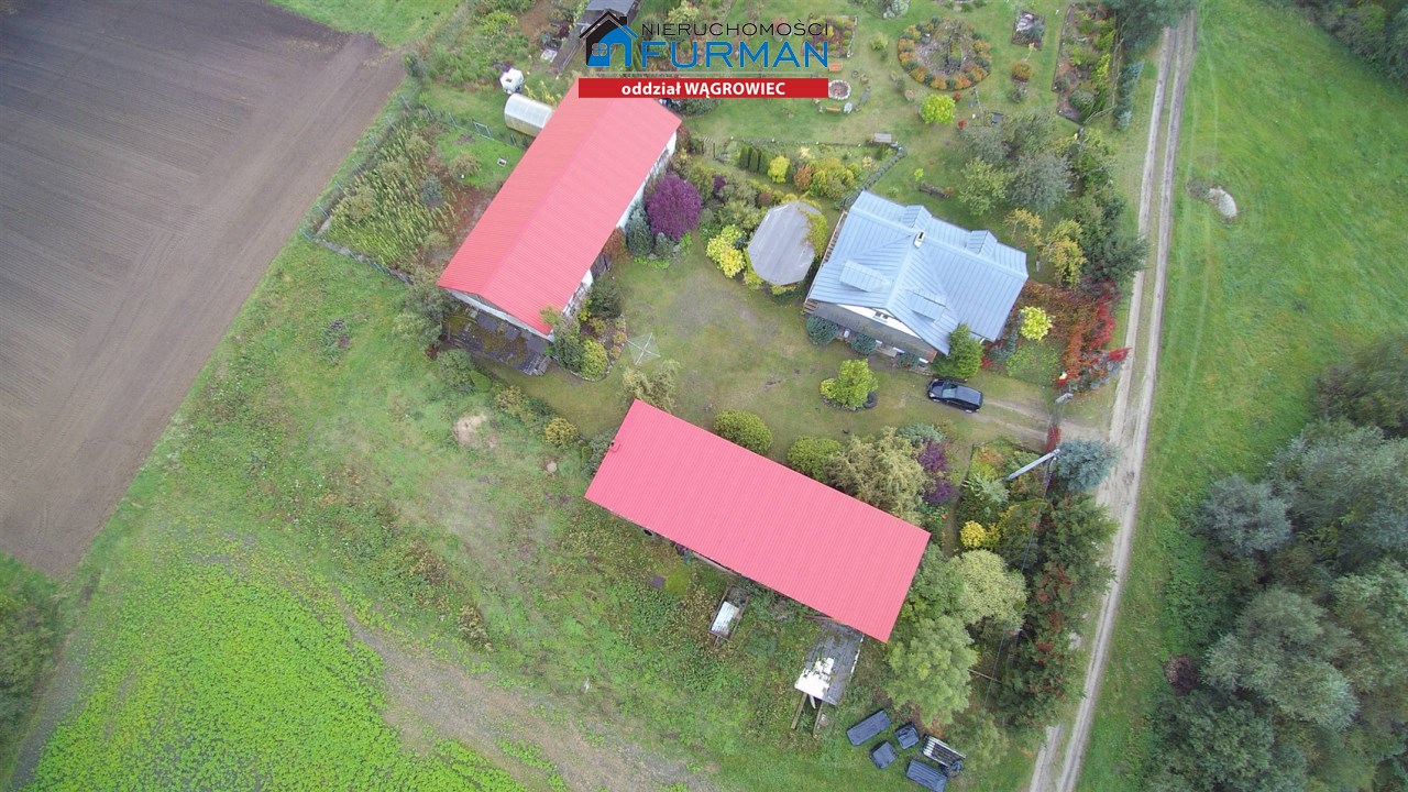 Działka zabudowana jest budynkiem mieszkalnym z 2 mieszkaniami, stodołą (190m2) oraz budynkiem gospodarczym (91m2). Dachy na budynkach gospodarczych wymenione w 2025r. na blachodachówkę.