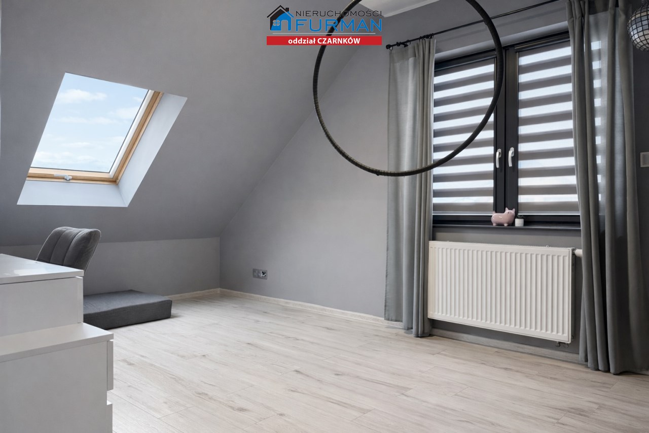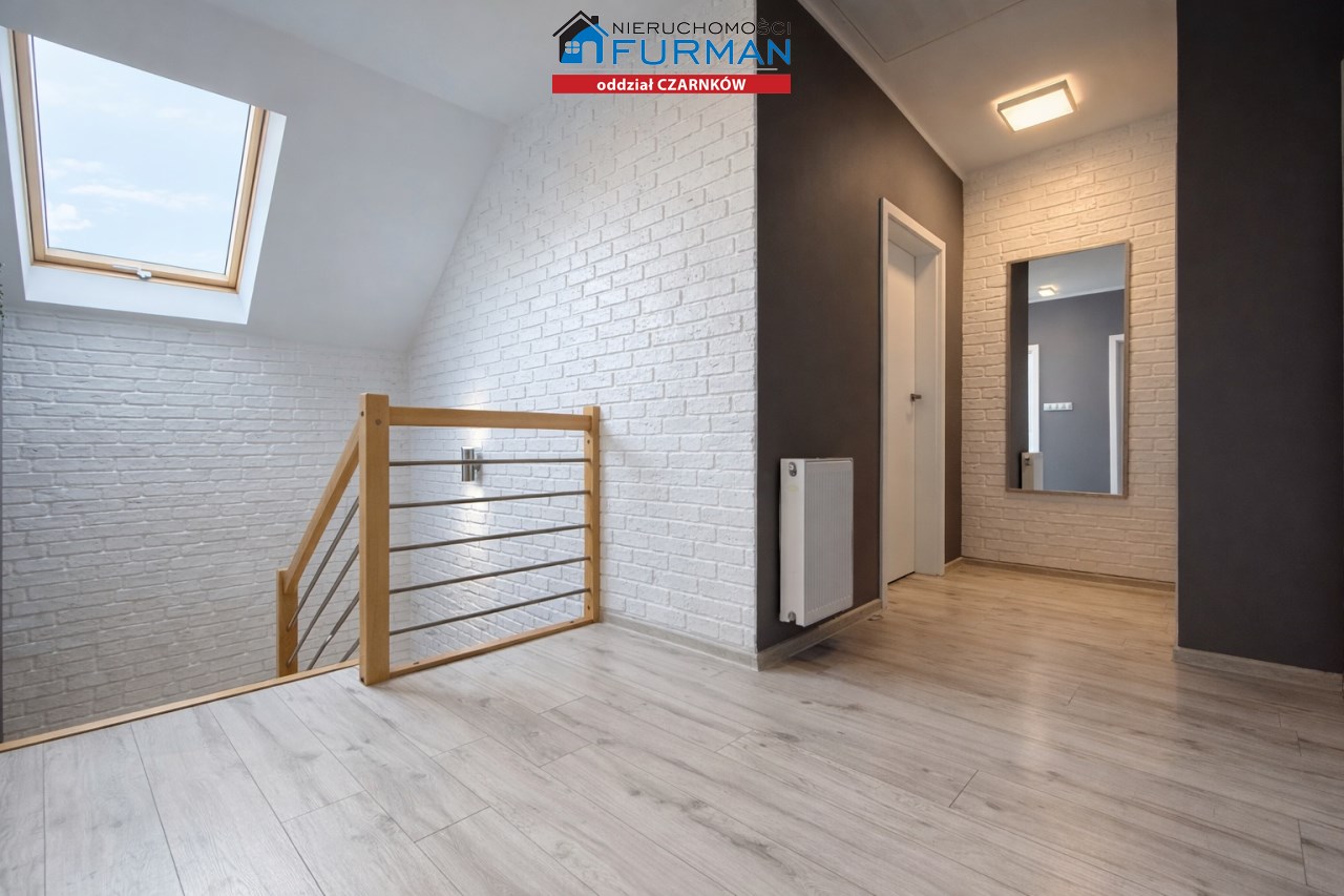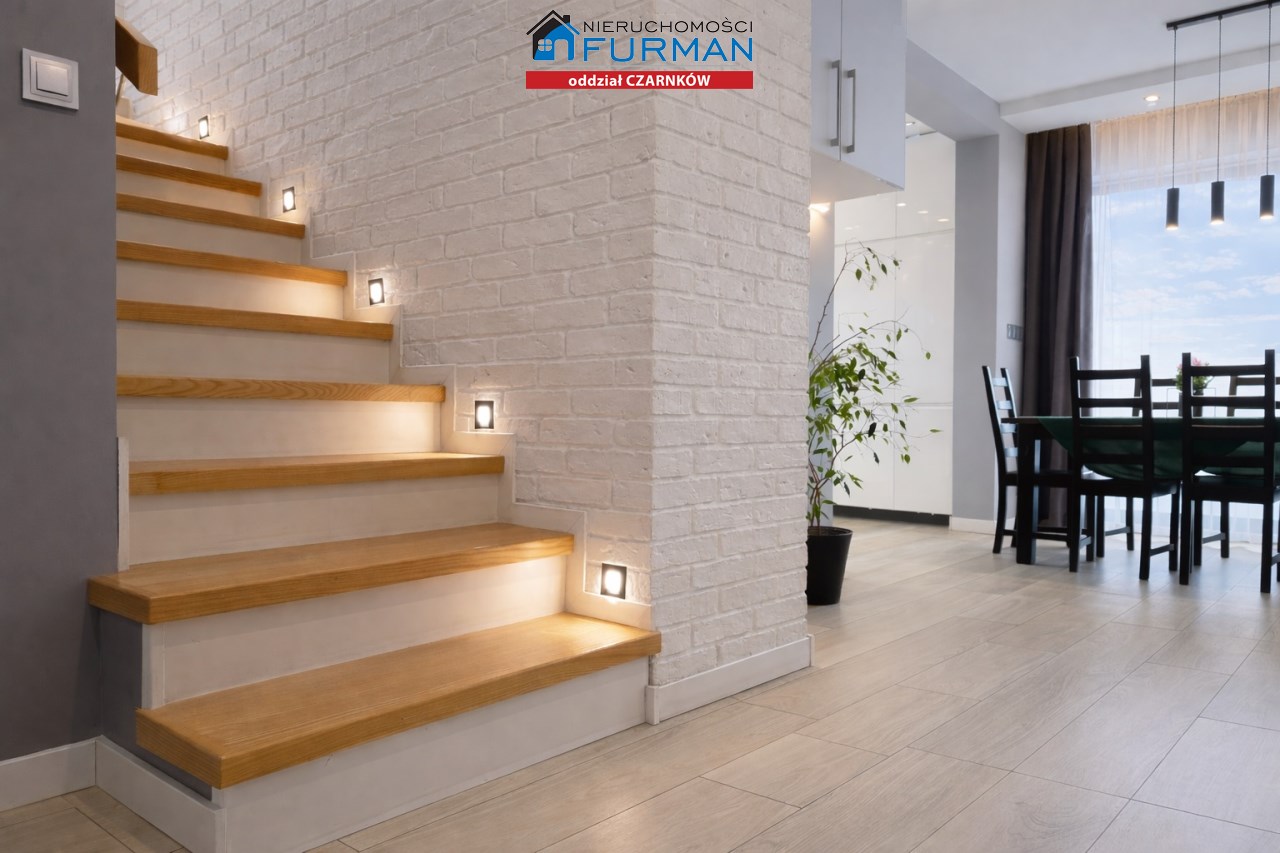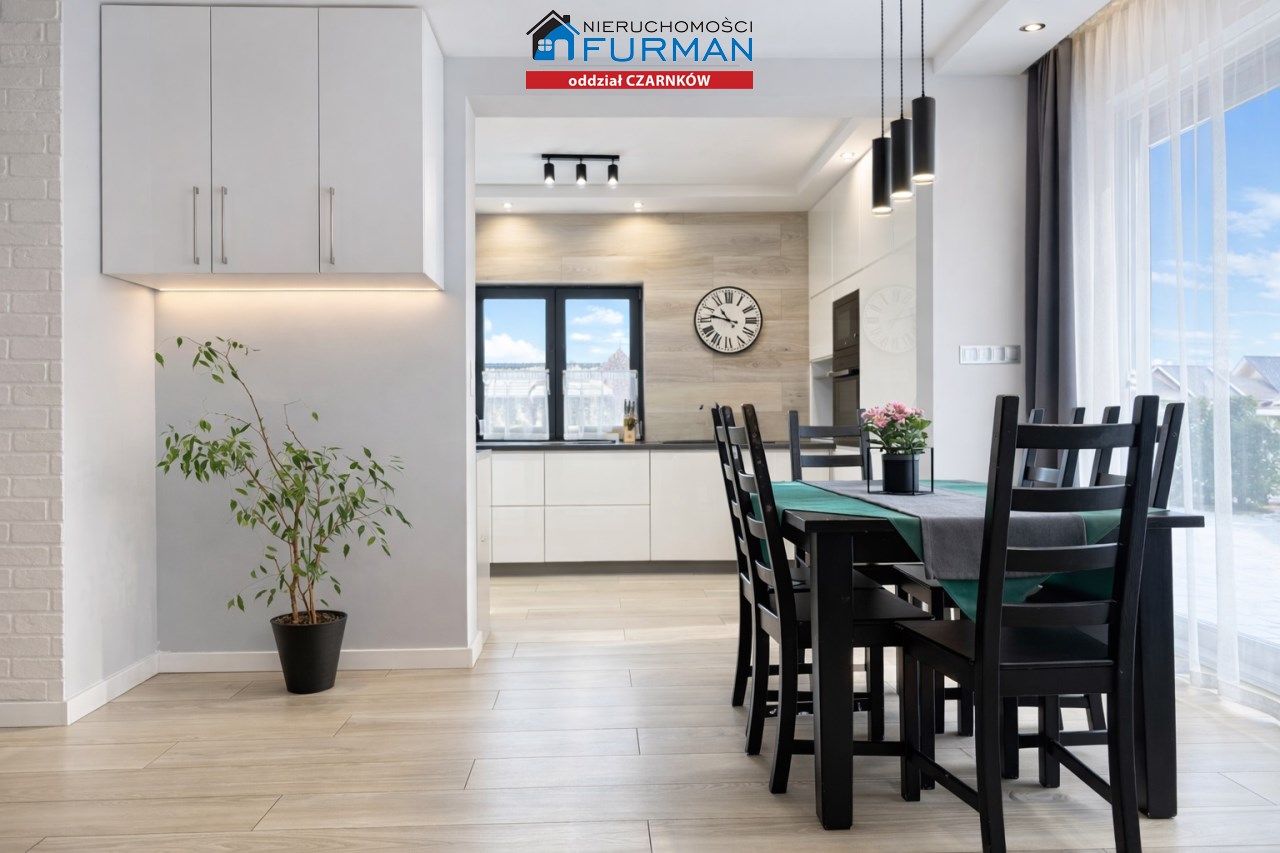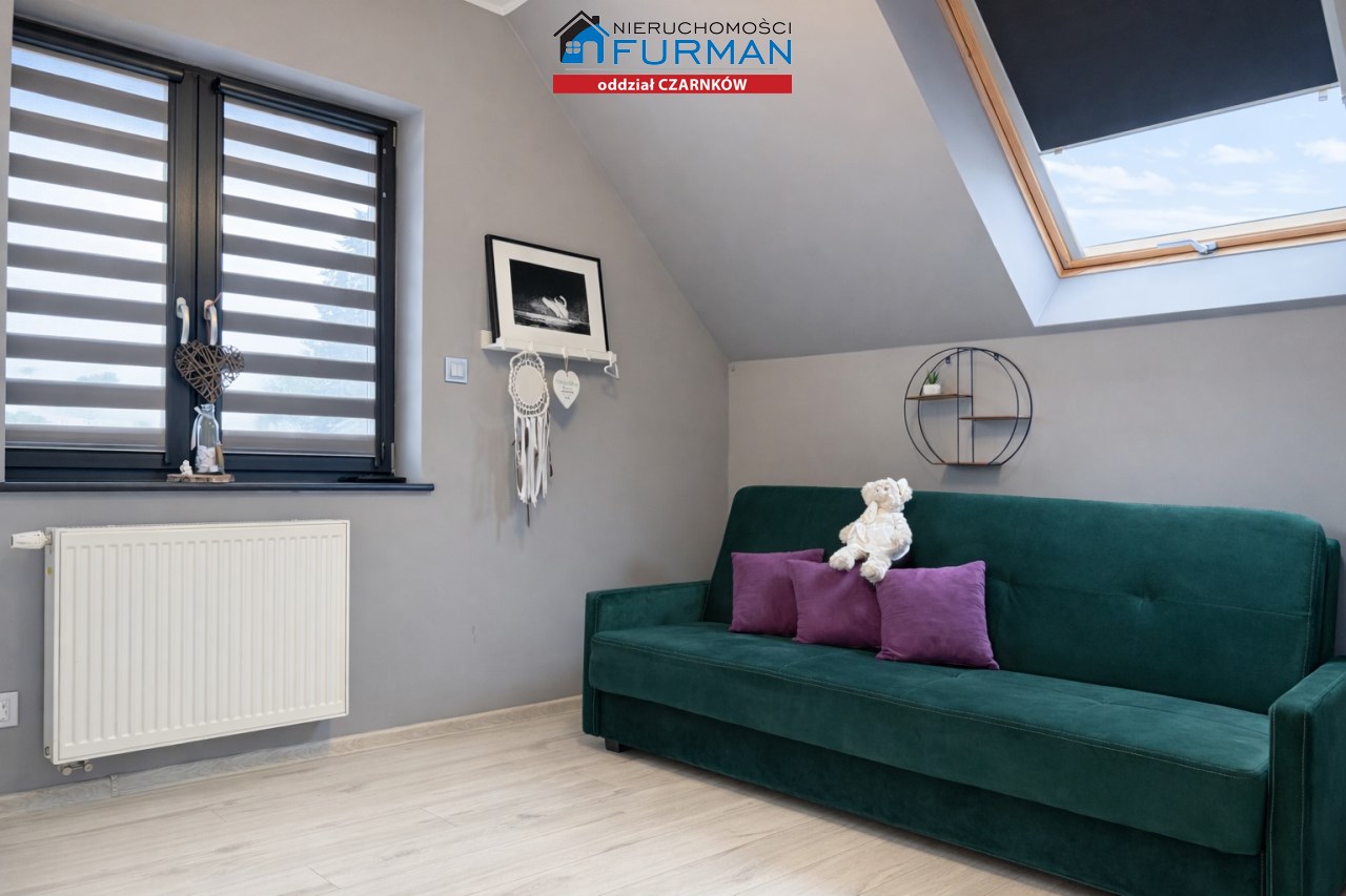 Sam dom, wybudowany w 2019 roku, ma 130 m² powierzchni użytkowej i został zaprojektowany w sposób, który sprawnie oddziela strefę dzienną/ gościnną od prywatnej. Salon z wyjściem na taras , który naturalnie łączy wnętrze z ogrodem.