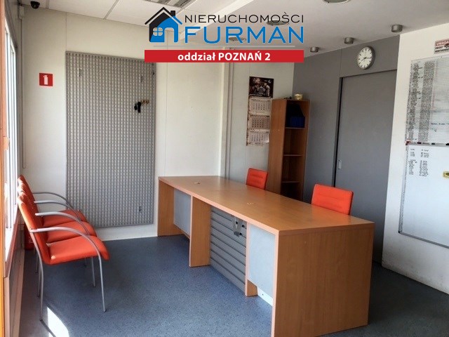 Pawilon biurowo-socjalny o powierzchni 28 m2 z płyty wielowarstwowej-obornickiej (ogrzewanie własne gazowe, prąd, woda, WC, internet światłowód- INEA).