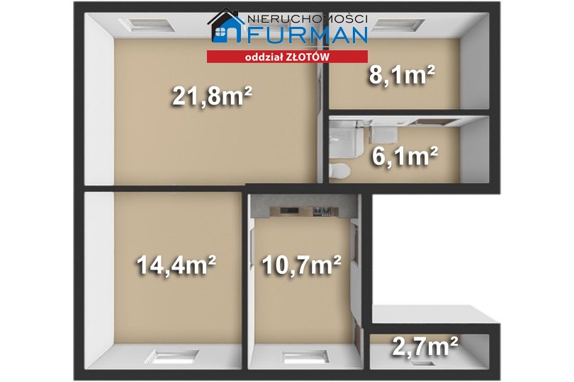 - powierzchnia: 3 pokoje (21,8 m²; 14,4 m²; 8,1 m²) co daje przestrzeń dla rodziny lub strefę do pracy zdalnej.