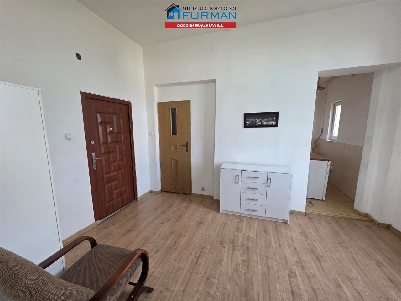 Układ pomieszczeń: salon, sypialnia, kuchnia, łazienka z toaletą