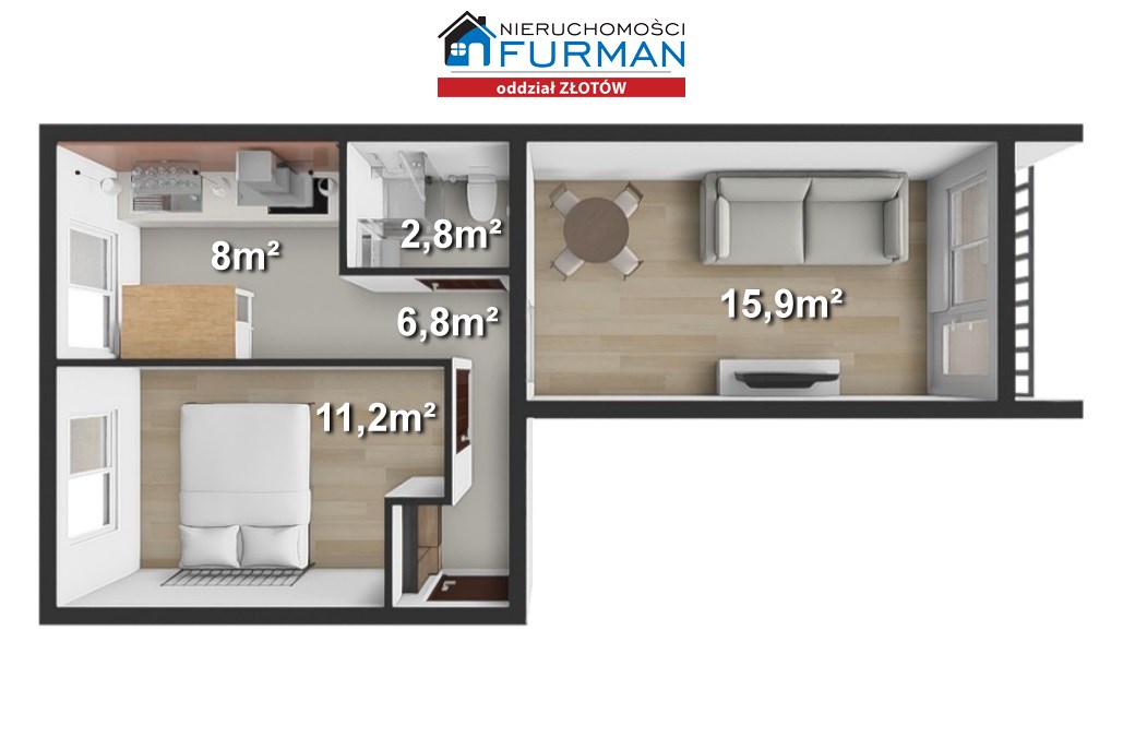 Przedmiotem sprzedaży jest funkcjonalne, dwustronne mieszkanie o powierzchni 44,7 m², położone na parterze zadbanego bloku z zasobów Spółdzielni Mieszkaniowej Piast w Złotowie.