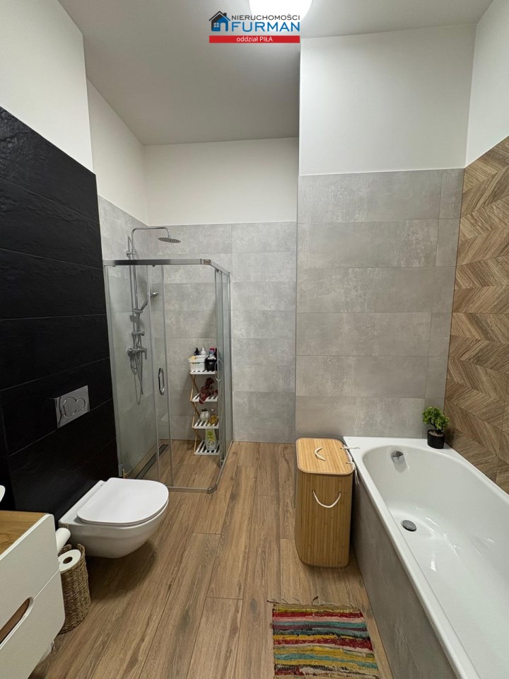 Przestronna łazienka (11,07 m²) oferuje zarówno prysznic, jak i wannę, zapewniając maksymalny komfort.