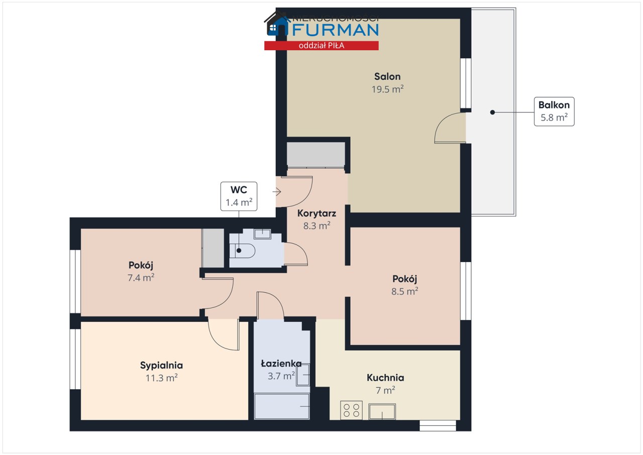 Mieszkanie 4-pokojowe | 68,53 m2 | Piła, ul. Podchorążych