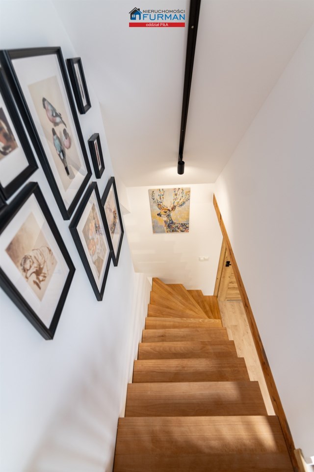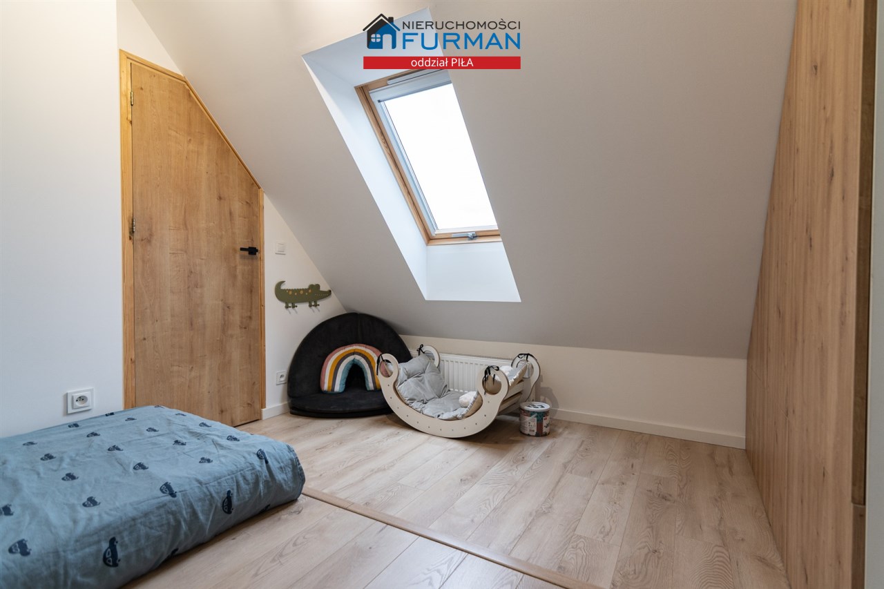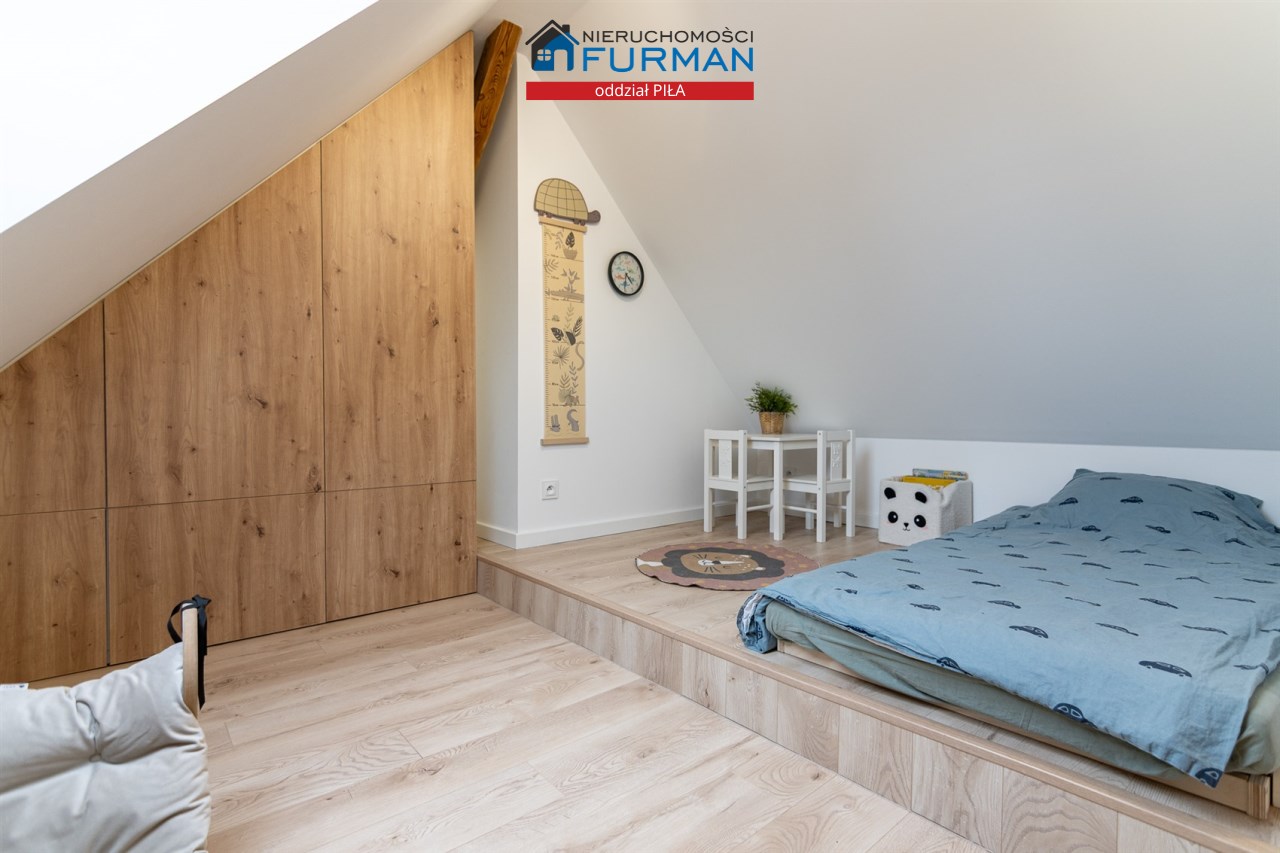 Nieruchomość sprzedawana jest z umeblowaniem widocznym na zdjęciach. Kuchnia wyposażona jest w sprzęt AGD (lodówka, płyta indukcyjna, piekarnik, zmywarka, okap). Okna PCV zapewniają dobrą izolację termiczną i akustyczną. Ogrzewanie gazowe (piec dwufunkcyjny) gwarantuje wygodę użytkowania, a klimatyzacja na piętrze znacząco podnosi komfort w cieplejsze dni.