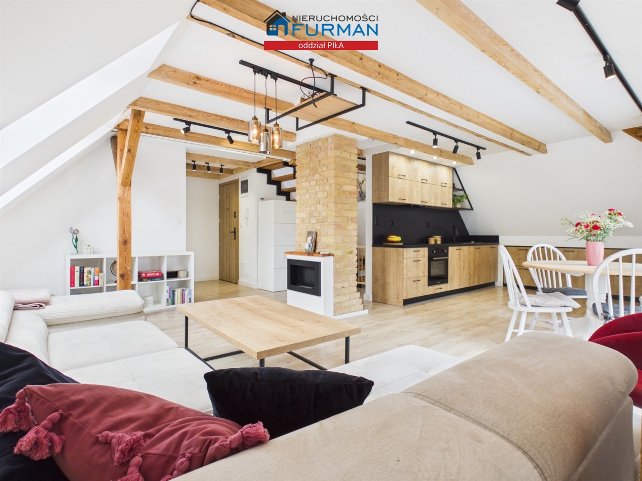 Lokal składa się z przestronnego salonu z w pełni wyposażonym aneksem kuchennym oraz dwóch niezależnych sypialni znajdujących się na piętrze, co zapewnia komfort, spokój i intymność domownikom.